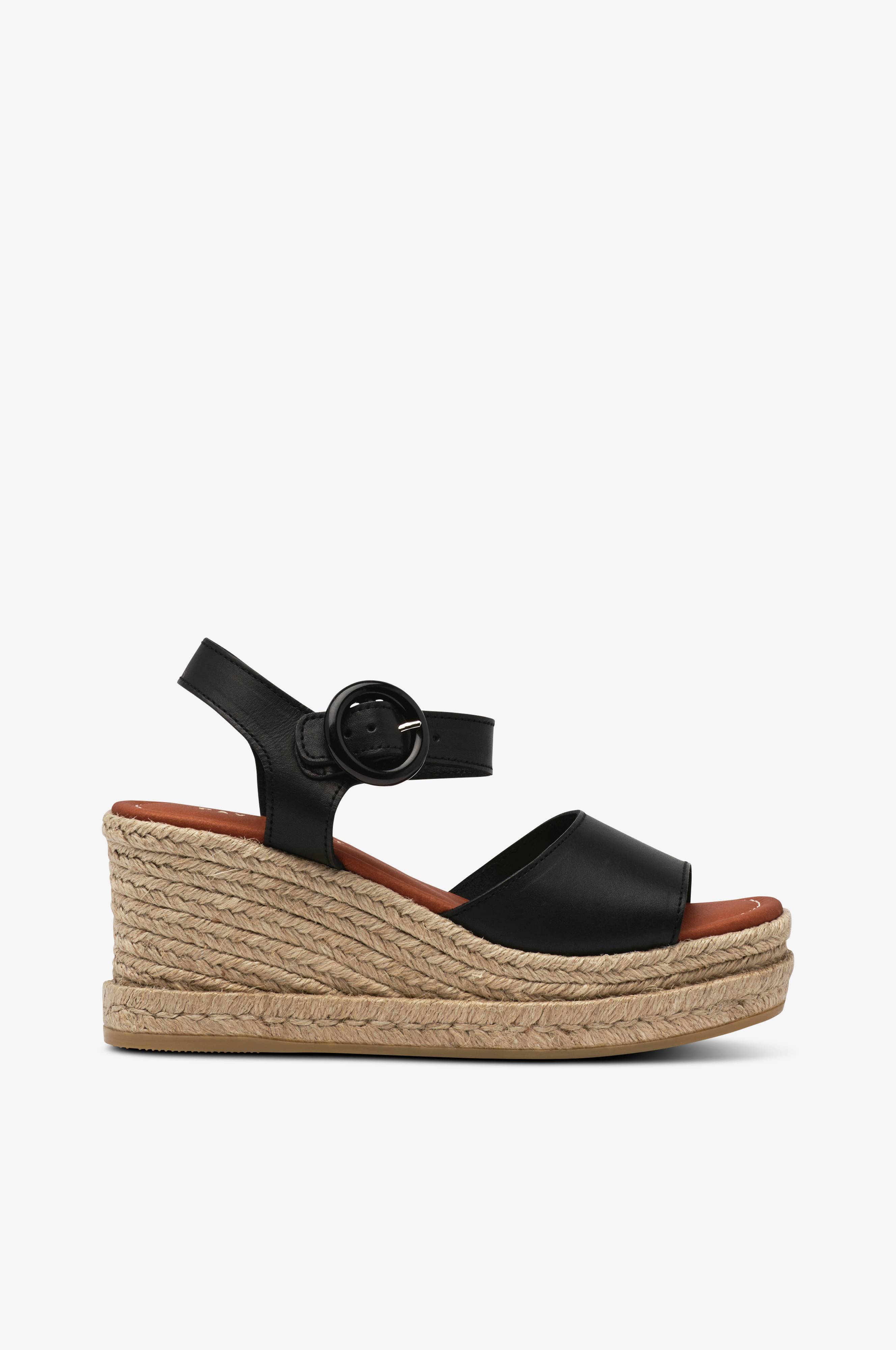 • Sandaler med hæl i læder• Justérbar ankelkæde med plastikspænde• Blød polstret fodseng• Rebbeklædt wedgehæl• Ydersål i gummi• Hælhøjde: 7 cm• Sålhøjde: 3,5 cm