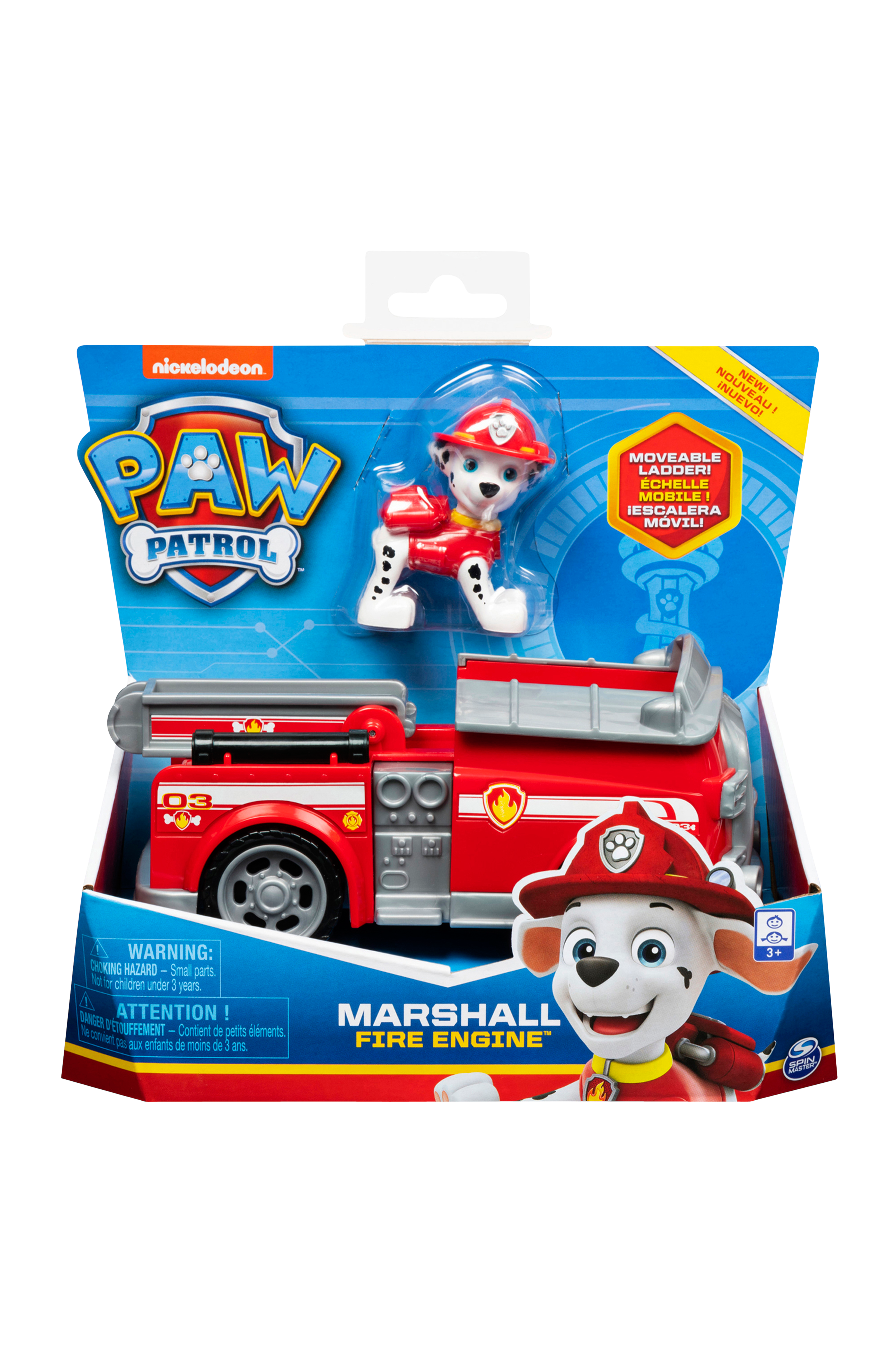 PAW Patrol er i gang med deres redningskøretøjer! Tag med Marshall på action-fyldte missioner i hans brandbil! Når der opstår problemer, placerer du Marshall (figur inkluderet) i førersædet og kører til undsætning på rigtige, fungerende hjul og en bevægelig stige! Med sine autentiske detaljer og realistiske funktioner giver PAW Patrol's elskede brandmandshund og hans køretøj liv til hele spændingen ved PAW Patrol. Når dit barn leger med Marshall og hans Fire Engine, vil dit barns fantasi optages af redningsmissioner fyldt med venskab, teamwork og tapperhed. Gå sammen med resten af hvalpene og deres redningskøretøjer (hver sælges separat) og hjælp med at redde dagen i Adventure Bay!