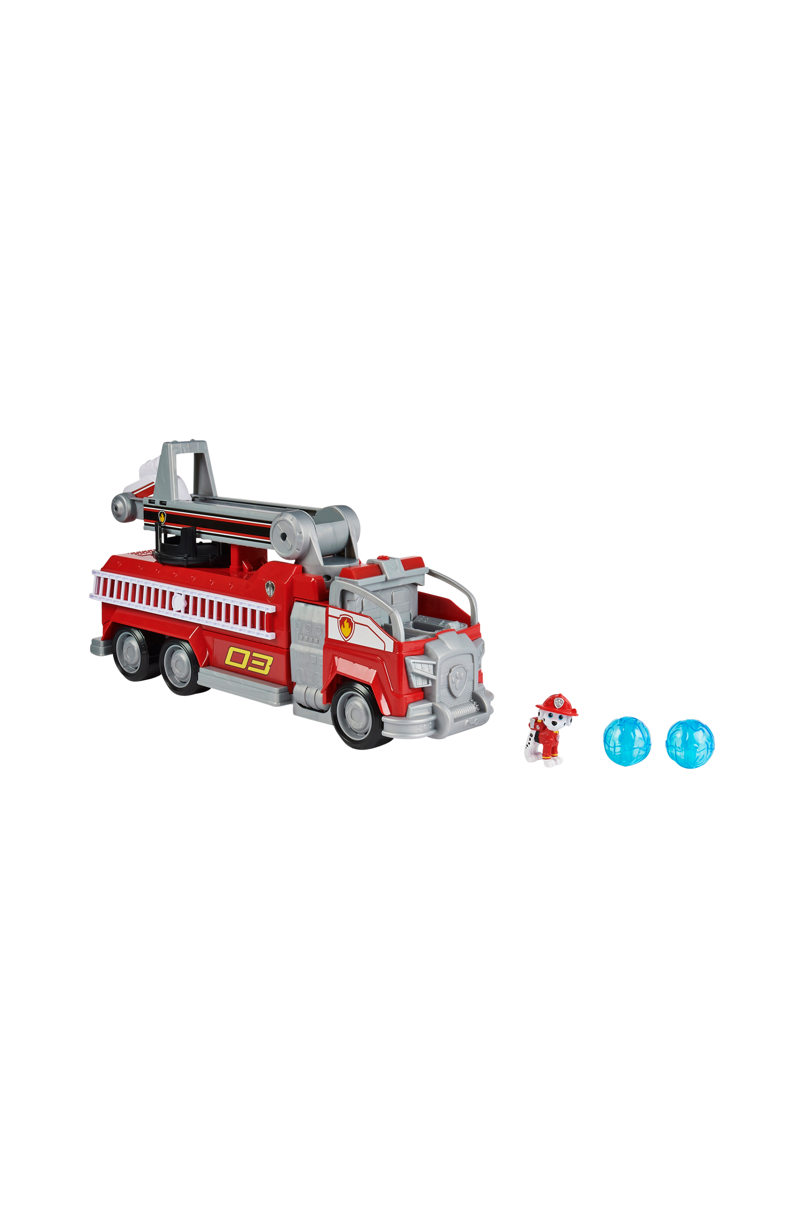 Denne utrolige legetøjsbrandbil gør Marshalls køretøjer fra PAW Patrol: The Movie levende. Episke transformationer, en udvidelig og roterende redningsstige, massiv vandkanonskyder, blinkende lys og naturtro lyde gør dette PAW Patrol-legetøj til den perfekte måde at lege dine filminspirerede redningsmissioner på.