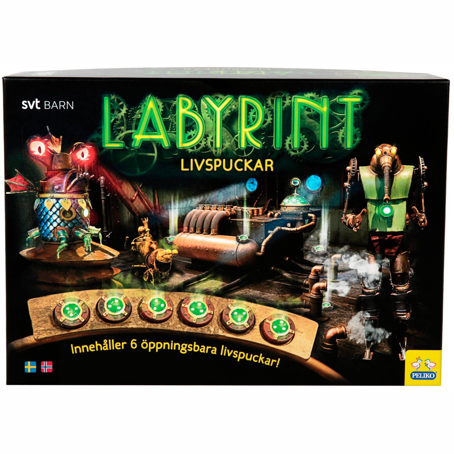 - Spillet indeholder 6 livspucks, der kan åbnes, 8 minipuslespil, livspucks og regler på svensk og norsk.
