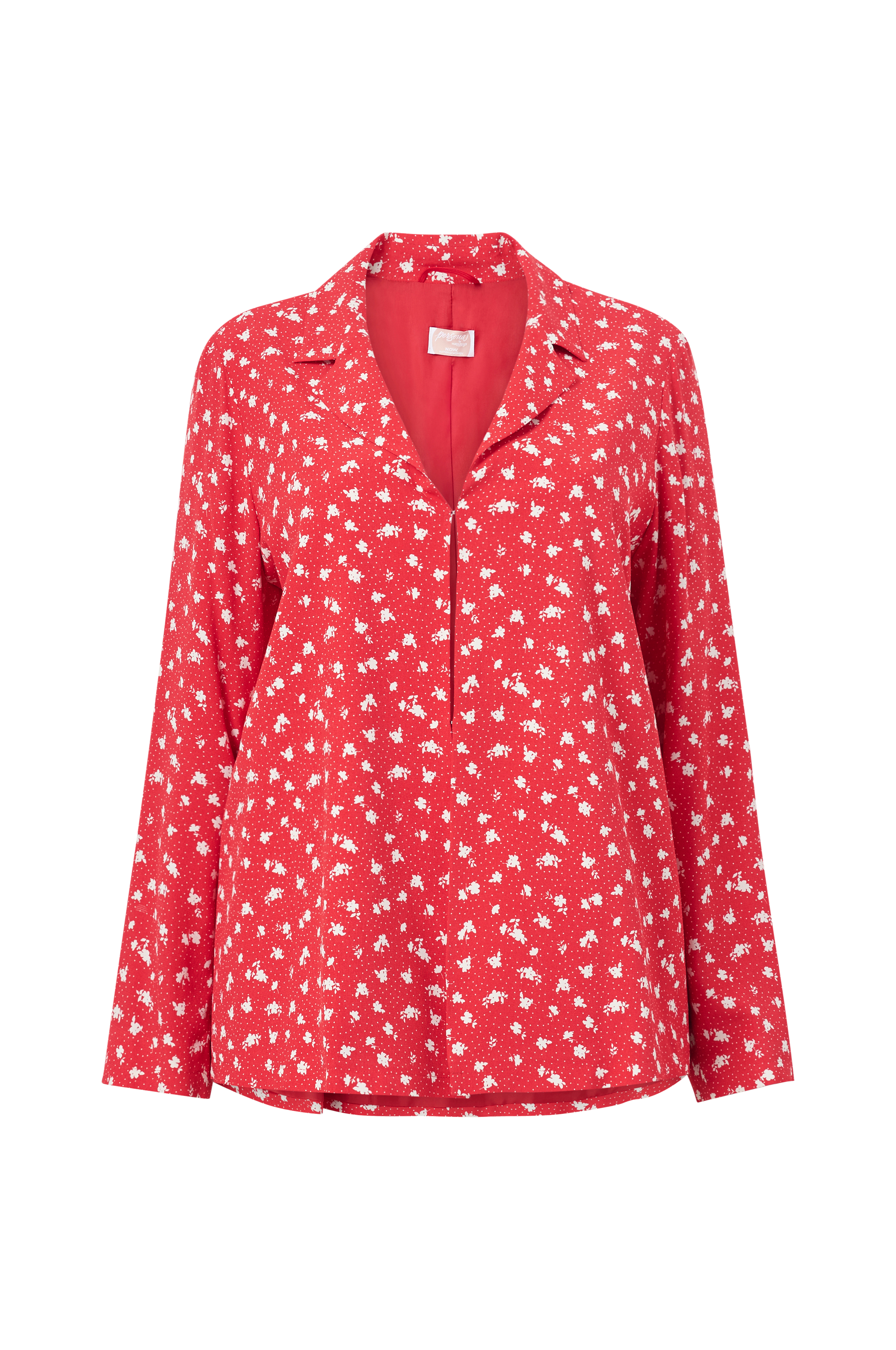 Blazer i lige model af foret, vævet kvalitet med krave og revers samt to skjulte hægter foran. Længde ca. 76 cm i str. S.