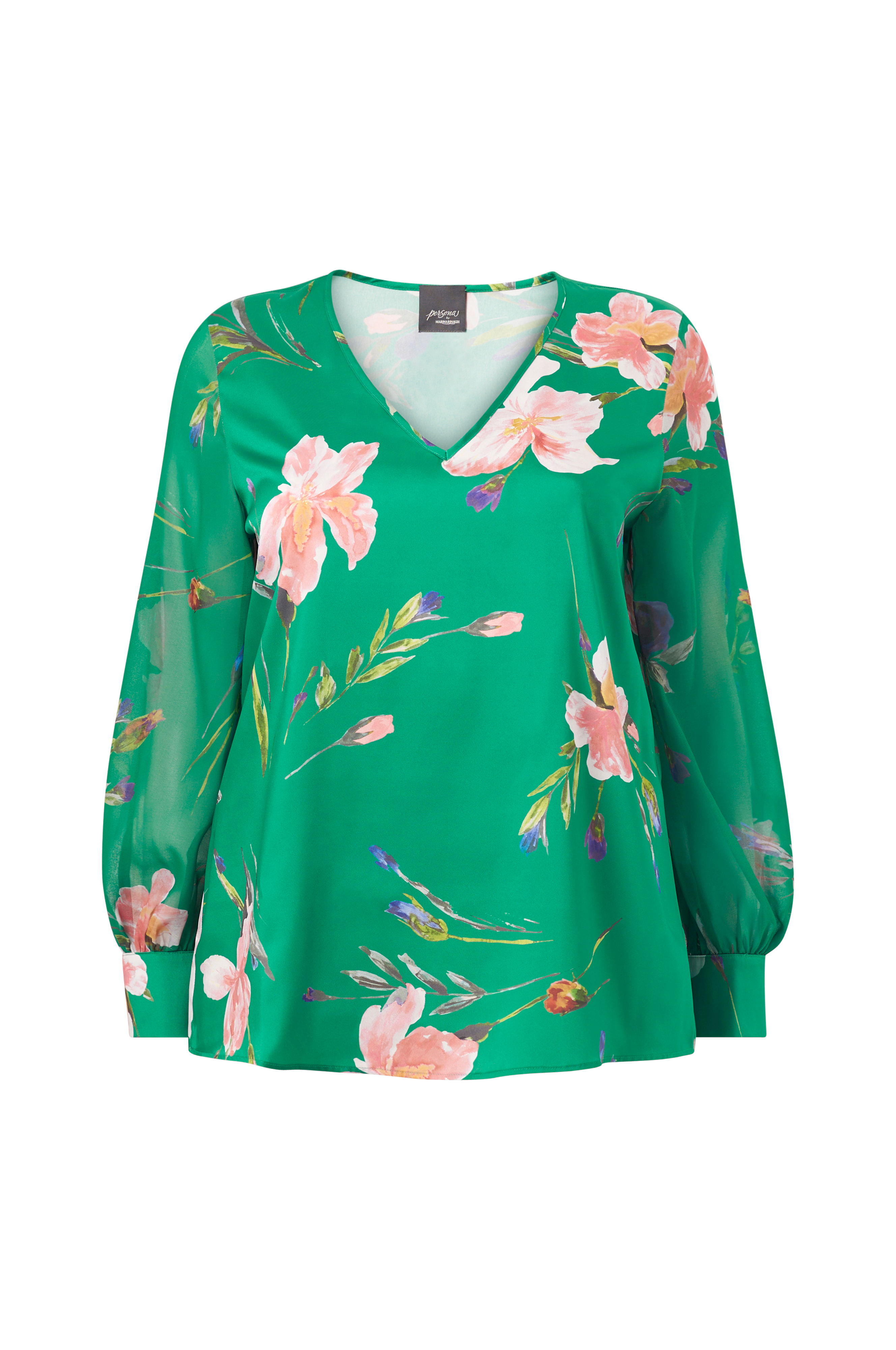 • V-udskæring• Lange, transparente ballonærmer med manchet• Store størrelser