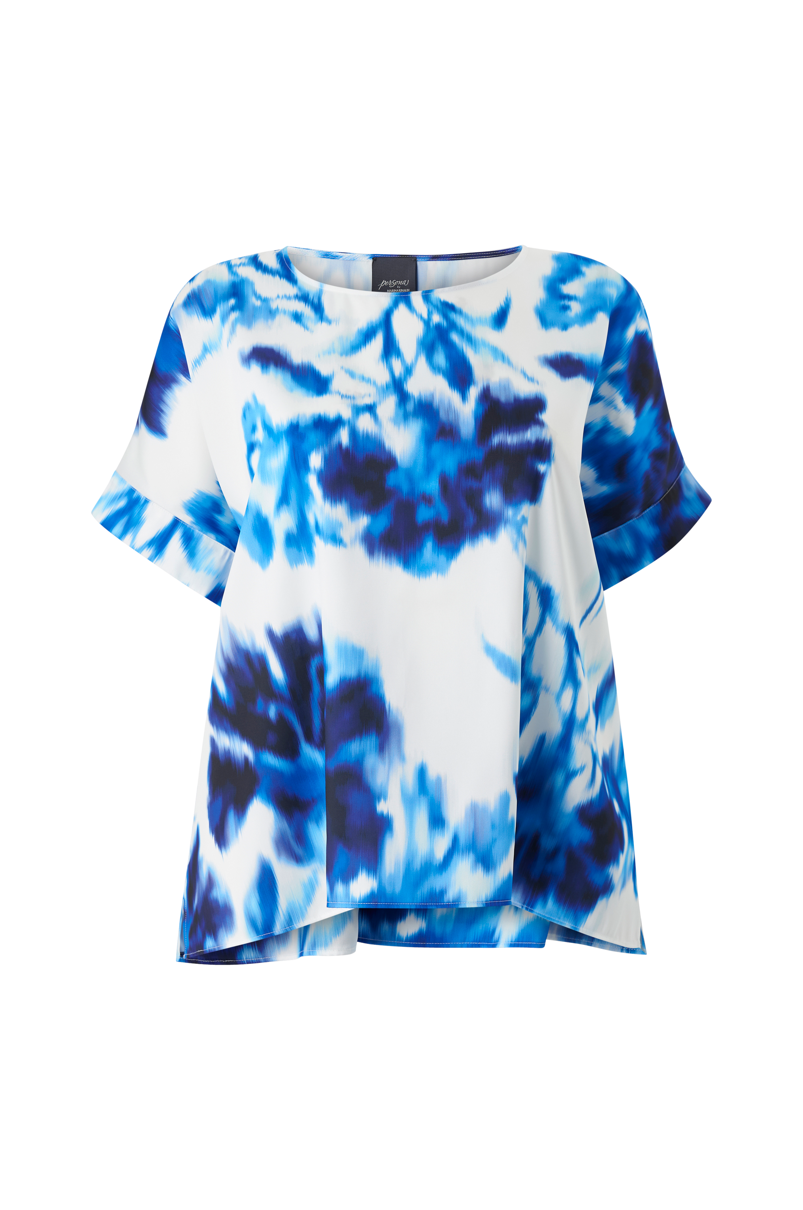 • Mønstret bluse i satin• Bred model• Løs pasform• Korte ærmer• Ventilationer nede i siderne• Store størrelser