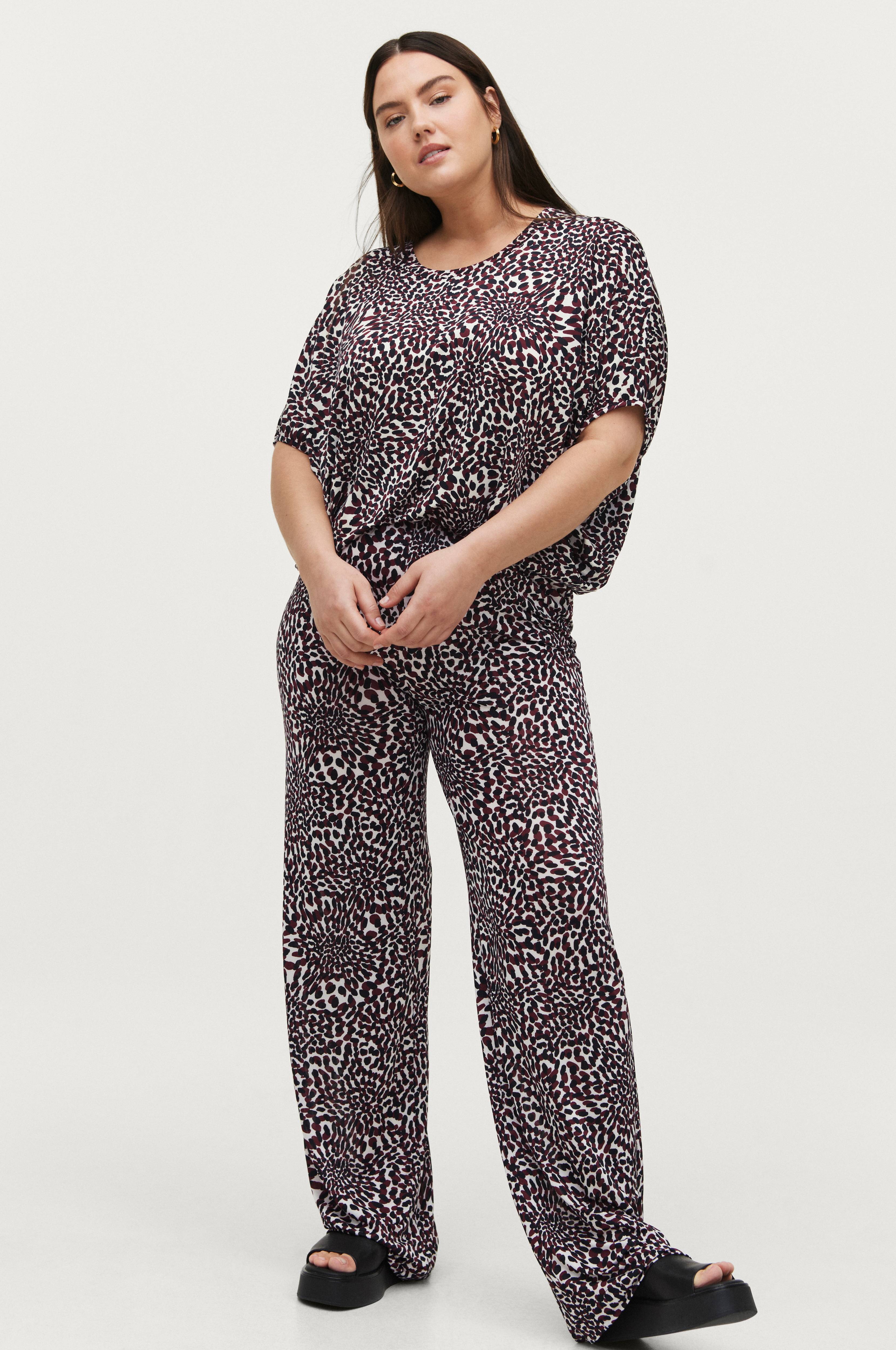 Vida byxor i tunn, mönstrad trikå med lyster.