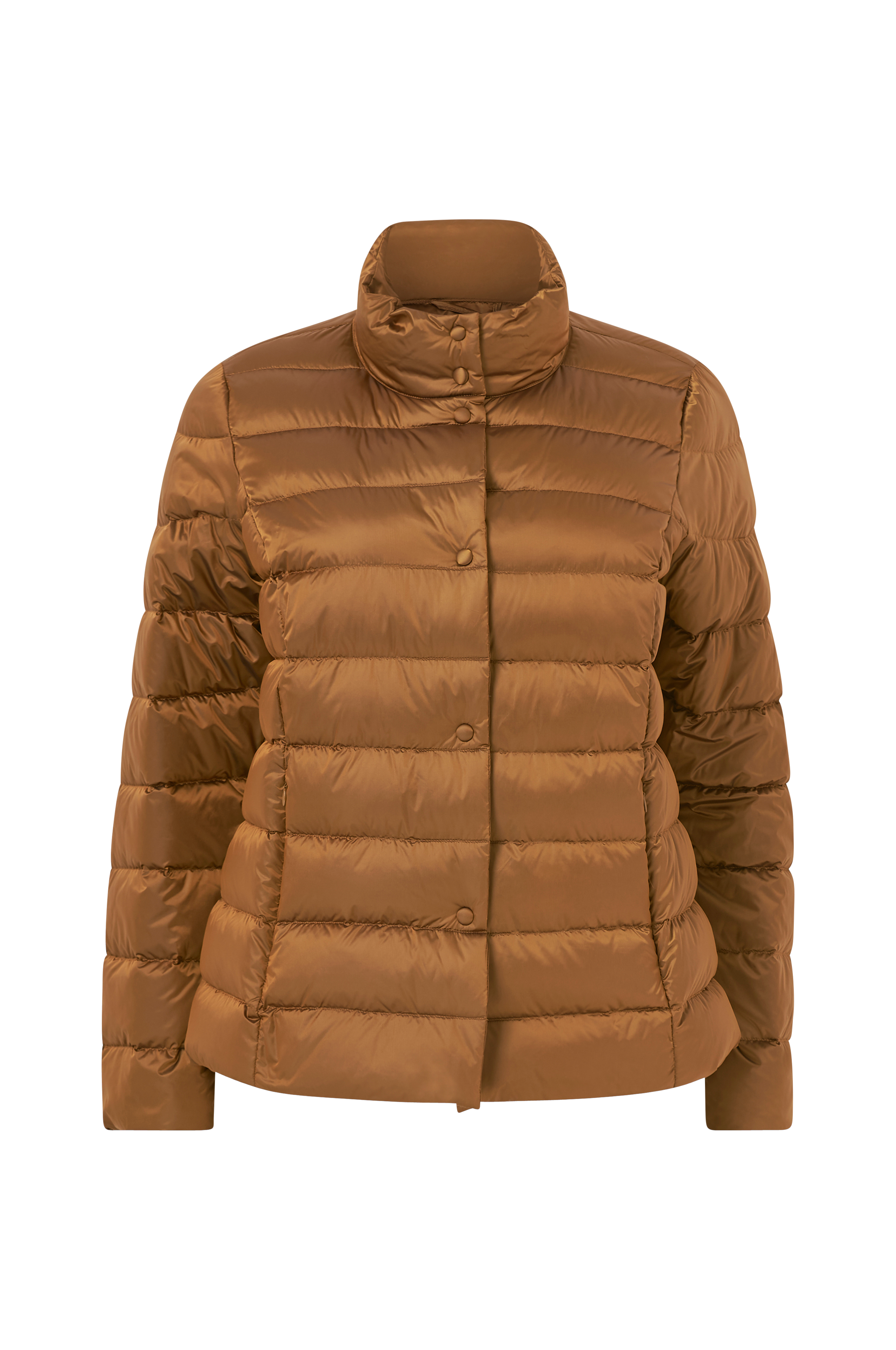 Dunjakke Quilted Mantel fra Persona by Marina Rinaldi, letvægtsmodel med varmende vattering og quiltet yderstof med fin glans. Trykknapper og lommer med lynlås foran. Længde ca. 70 cm i str. 46.