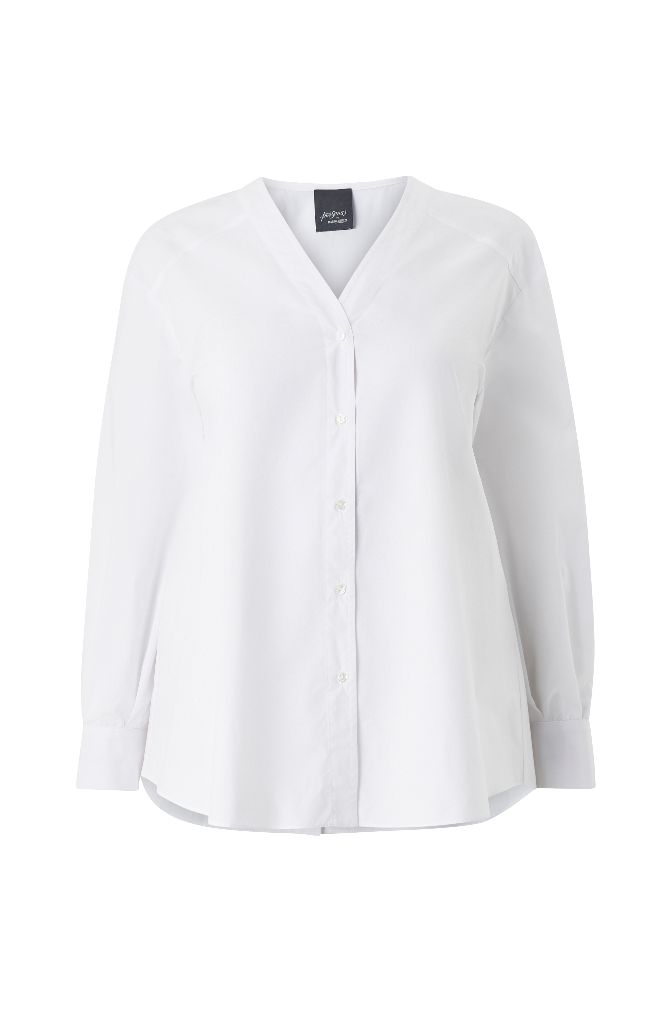 • V-udskæring• Knapper foran og bagpå• Ballonærmer med manchet• Afslappet pasform• Store størrelser