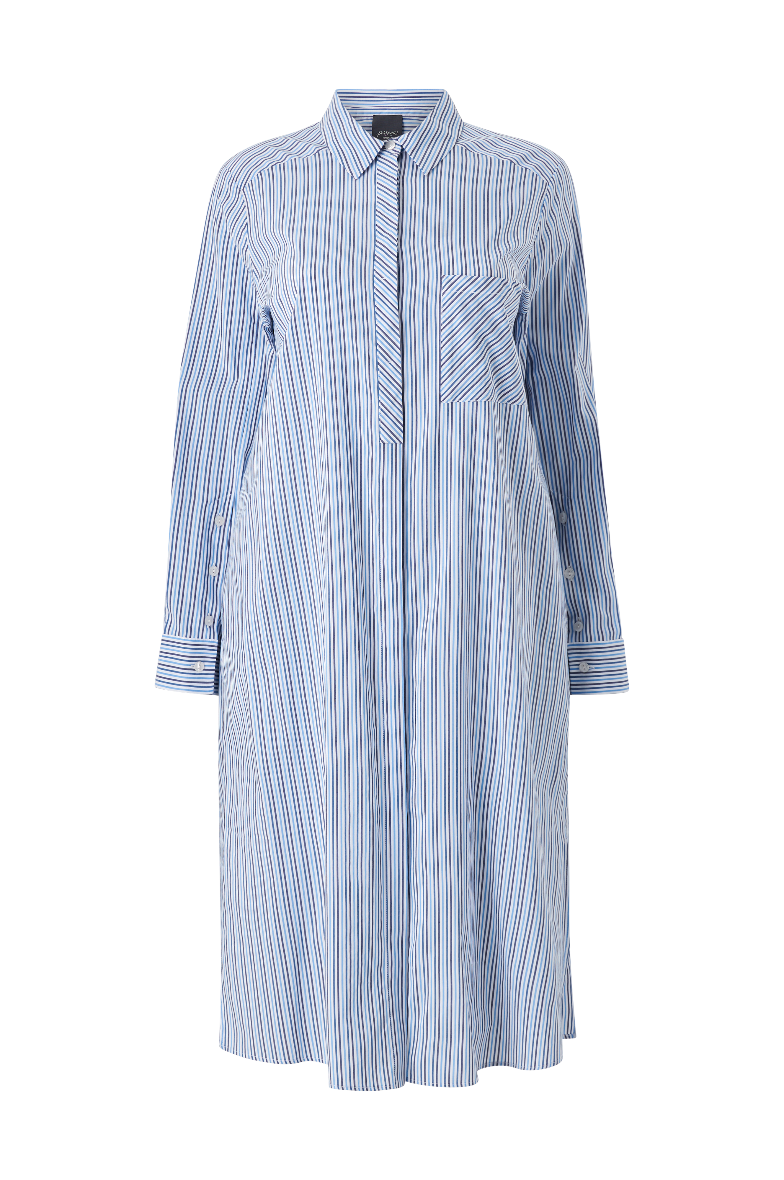 • Stribet kjole• Skjulte knapper foran• En brystlomme• Lommer i siderne• Bindebælte• Slidser i siderne• Store størrelser• Længde: 119 cm i størrelse 48