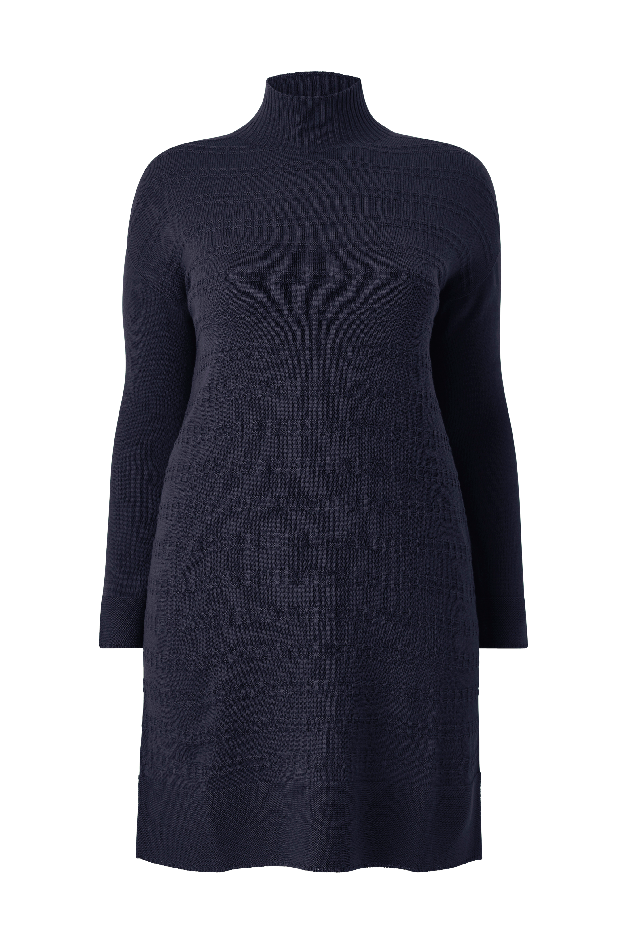 • Kjole i uldmiks• Lige, smal pasform• Strukturstrikket forside• Ribstrikket opretstående krave• Nedsænkede skuldre• Store størrelser• Længde: 101 cm i størrelse S
