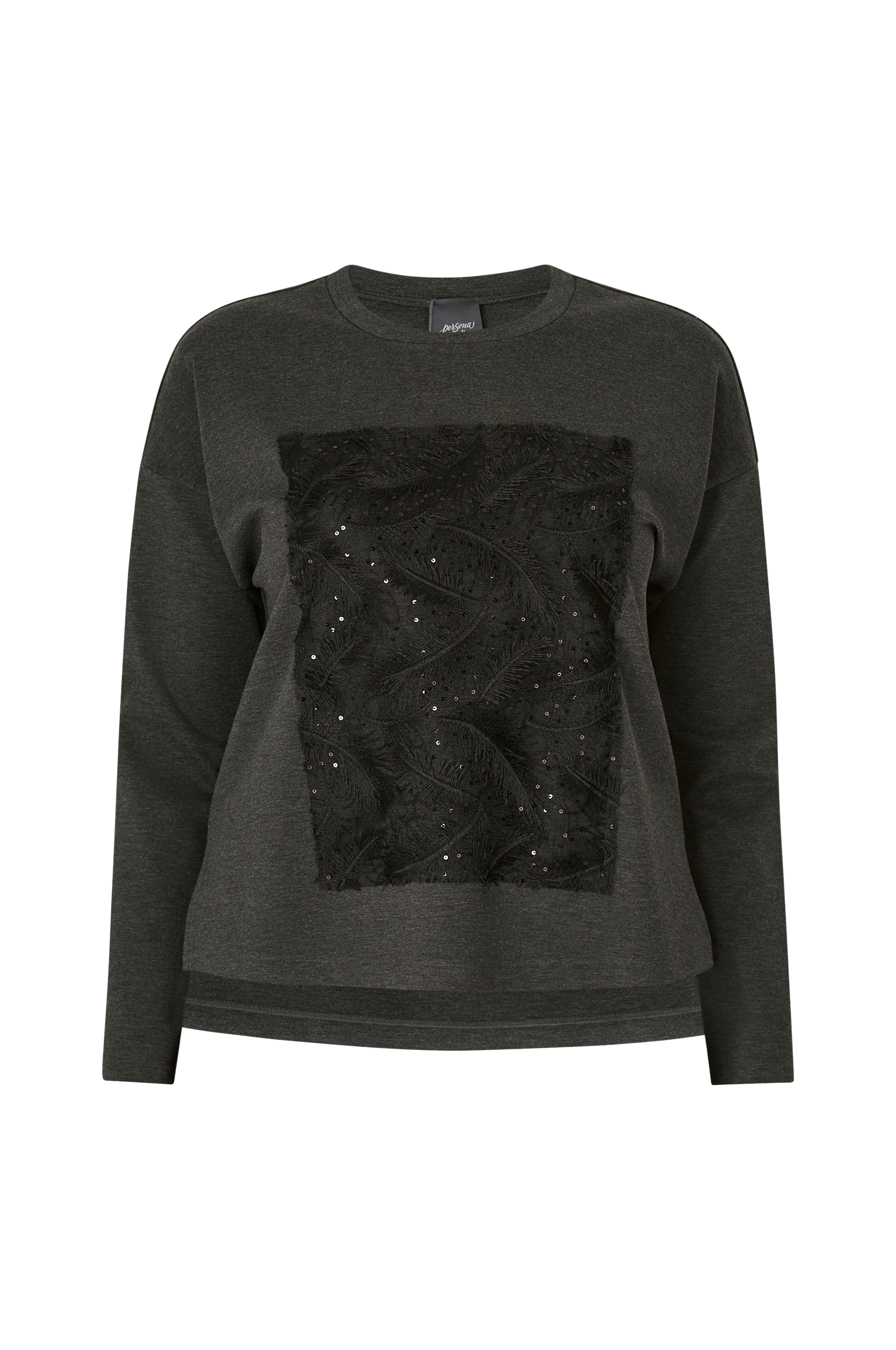 • Store størrelser• Lige model• Mesh med broderi og pailletter foran• Rund hals med lille kant• Nedsænket skulder med langt ærme• Ventilation nede i siderne