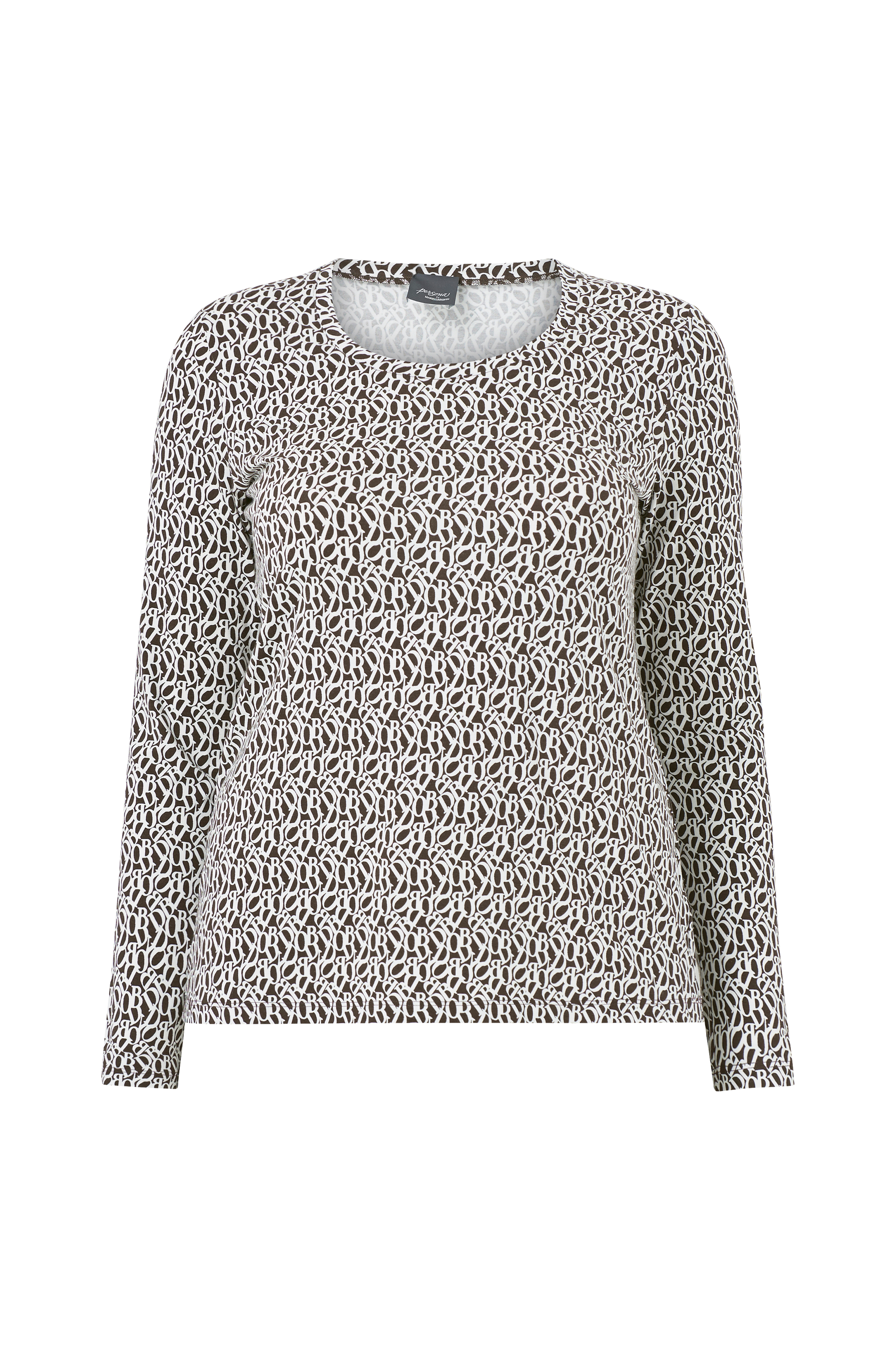 Top Venti fra Persona by Marina Rinaldi i viskosejersey med heldækkende bogstavmønster. Lange ærmer og rund hals med ribkant.