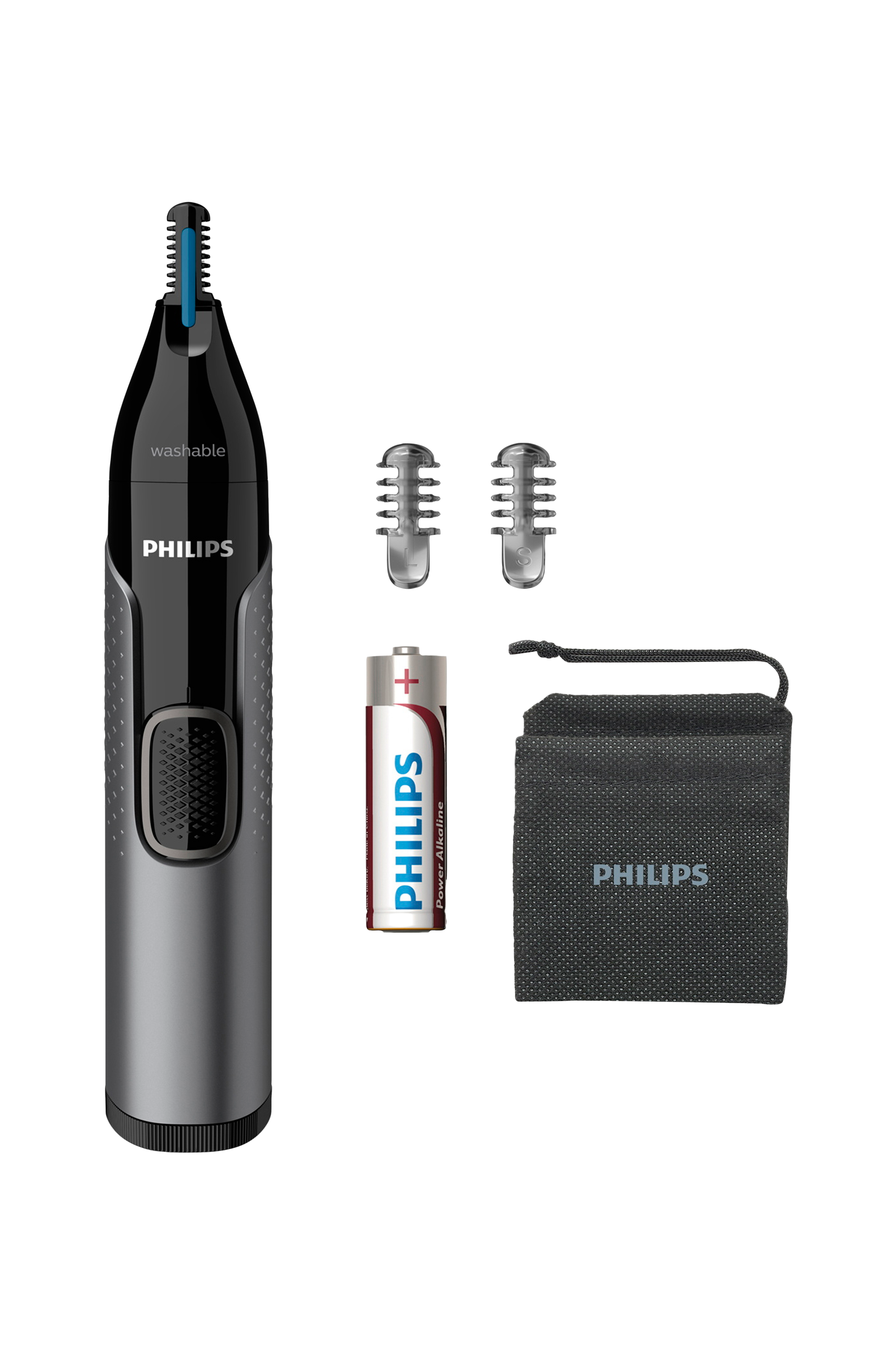 Philips næsetrimmer i serien 3000 trimmer behageligt næsehår, ørehår og øjenbryn. Den nye PrecisionTrim-teknologi og Protective Guard-systemet er designet til at give enkel og effektiv trimning uden at hive og trække.