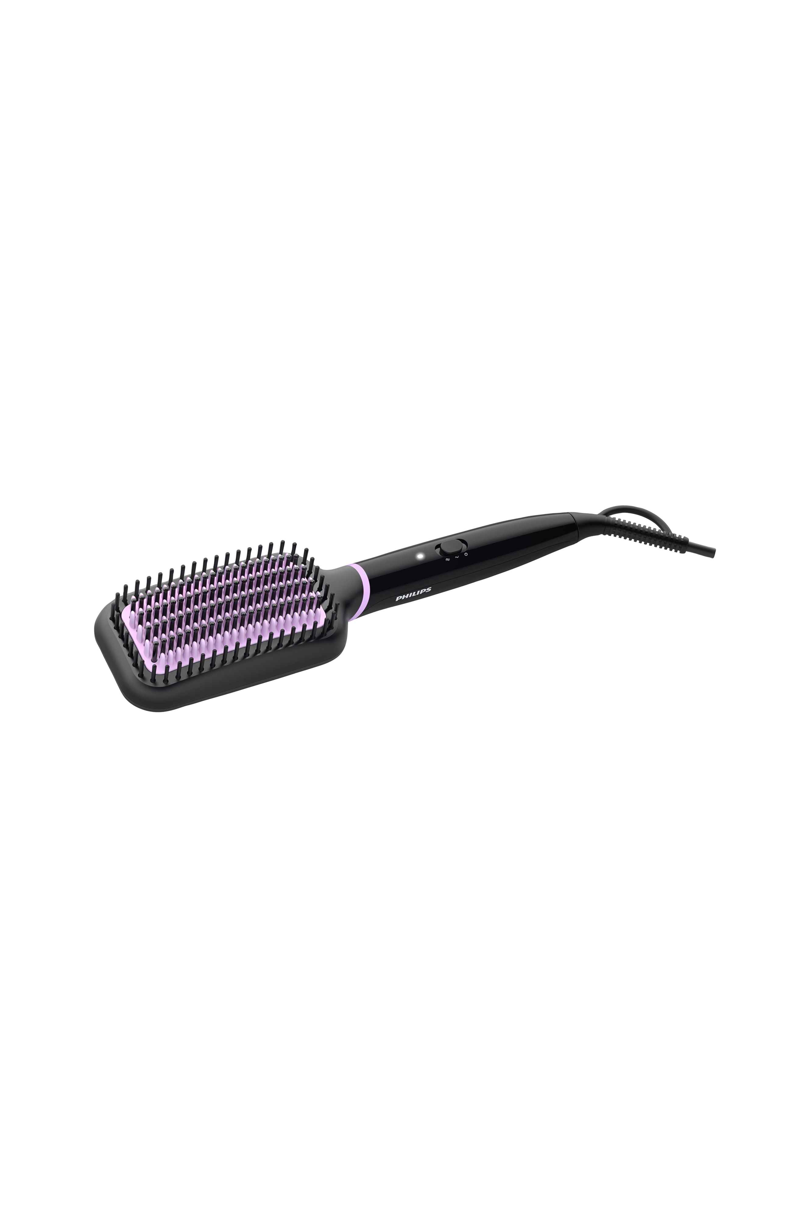 Opvarmet flad børste, der udglatter og flader håret, mens den beskytter hovedbunden mod varme. Den keramiske belægning gør det muligt for børsten at glide let over håret, mens ThermoProtect holder temperaturen konstant og beskytter håret.