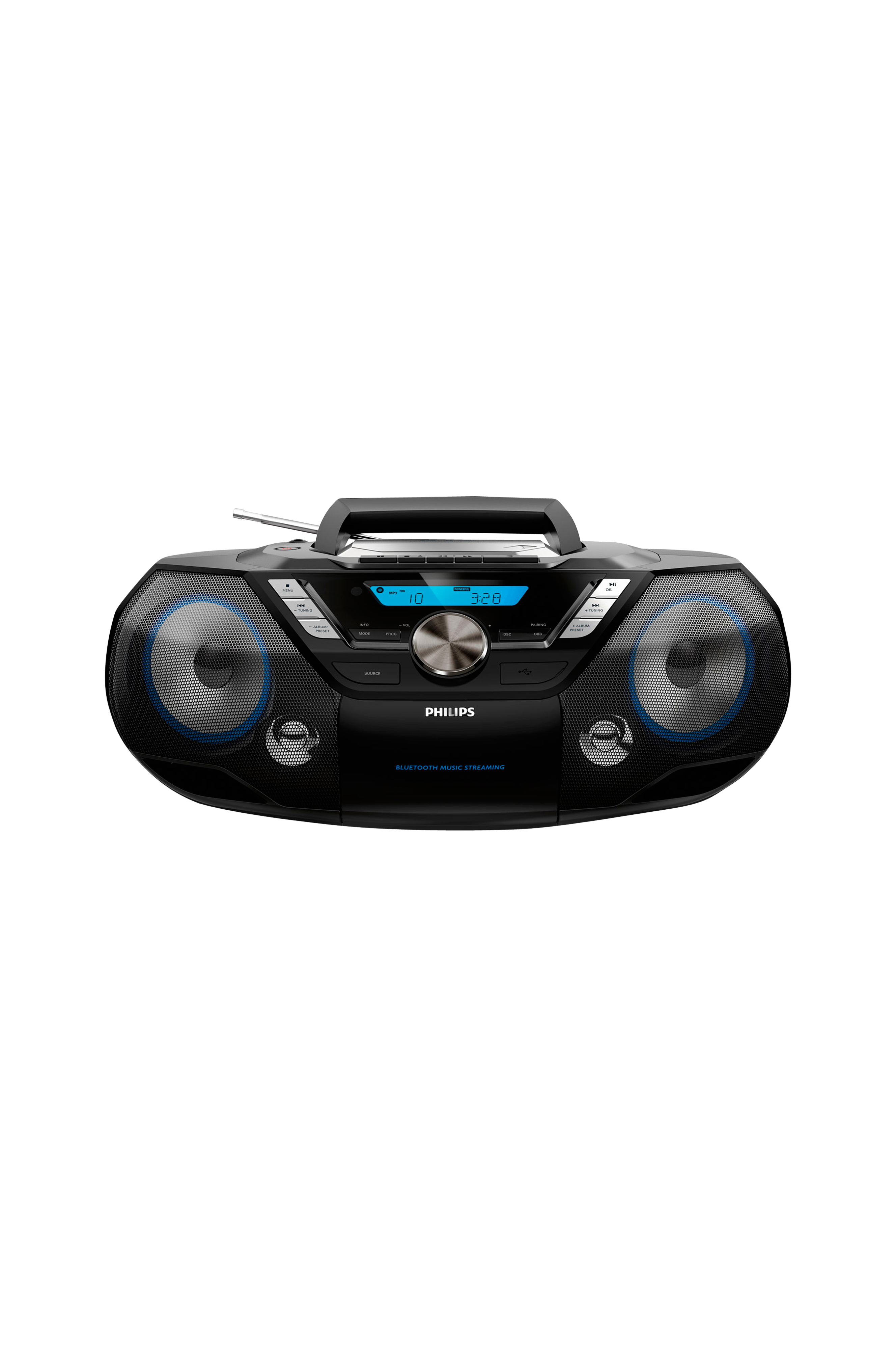 Philips' bærbare CD Soundmachine er et kraftfuldt alt-i-et-lydsystem, som du kan tage med overalt. Det frigiver musik fra en række forskellige kilder - Bluetooth, USB, CD, kassetter, DAB+ og FM-radio.