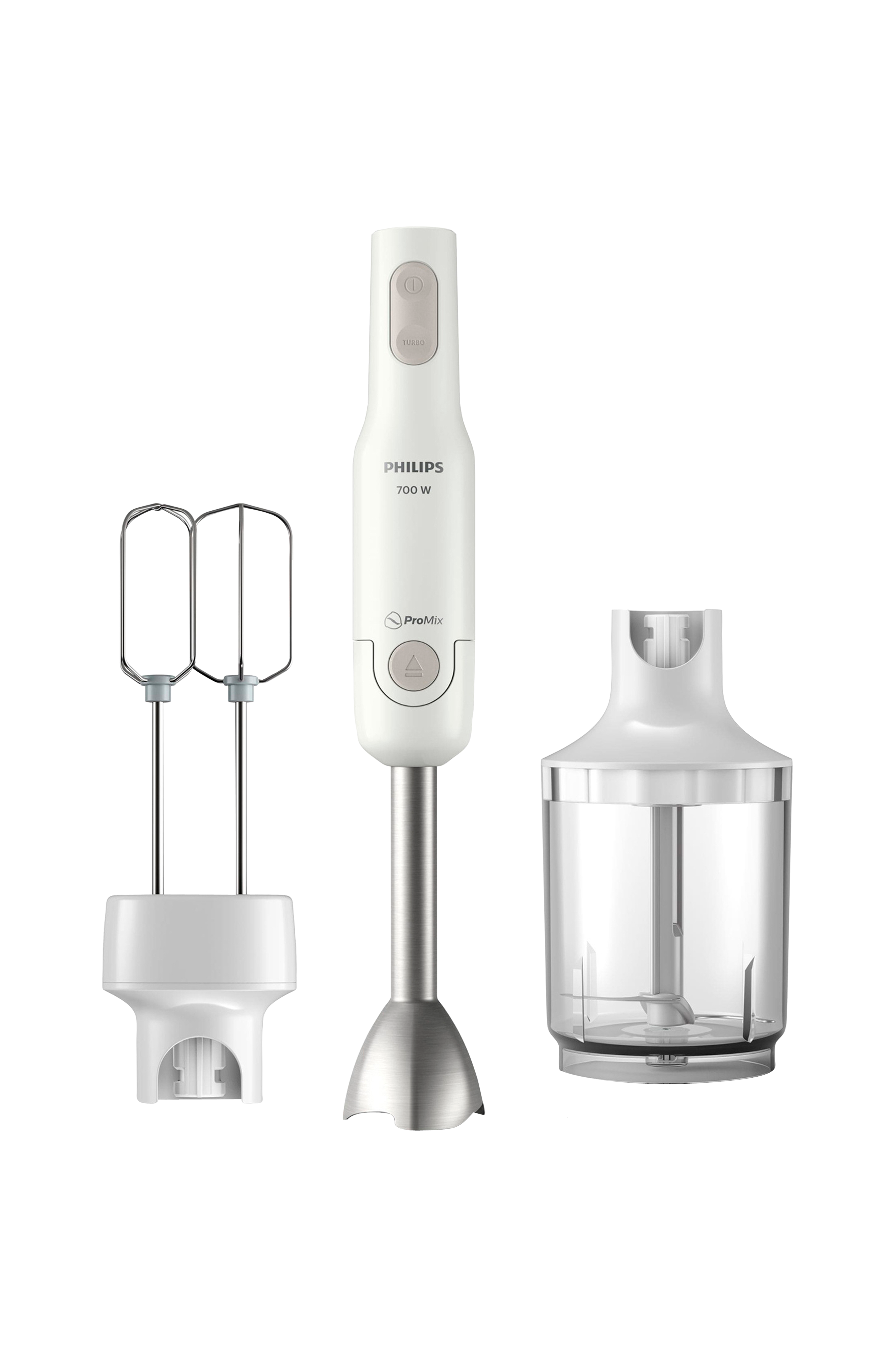 Hurtig og effektiv blanding med en kraftig motor, der har en turbofunktion, der kan skære igennem selv de hårdeste ingredienser med et tryk på en knapIndeholder også en dobbelt piskeris.