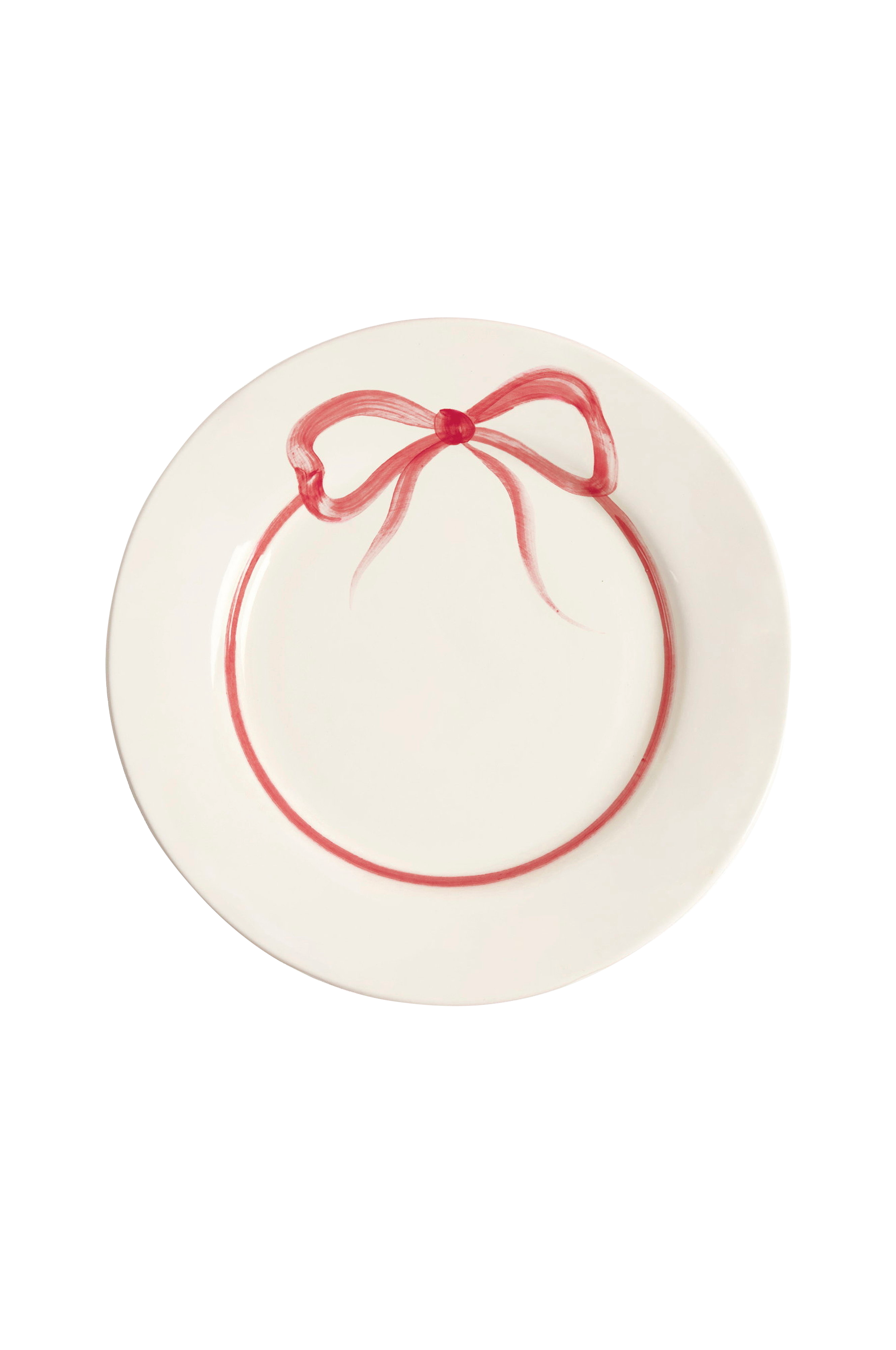 Dette produkt er en del af vores Bow kollektion. Vores Bow Dinner Plate er håndlavet og håndmalet i Portugal af vores elskede håndværkere og giver enhver bordplade en romantisk, men tidløs fornemmelse. Den har et klassisk hvidt udtryk med sorte kontraster, hvor vores ikoniske Poppy bow er i centrum.