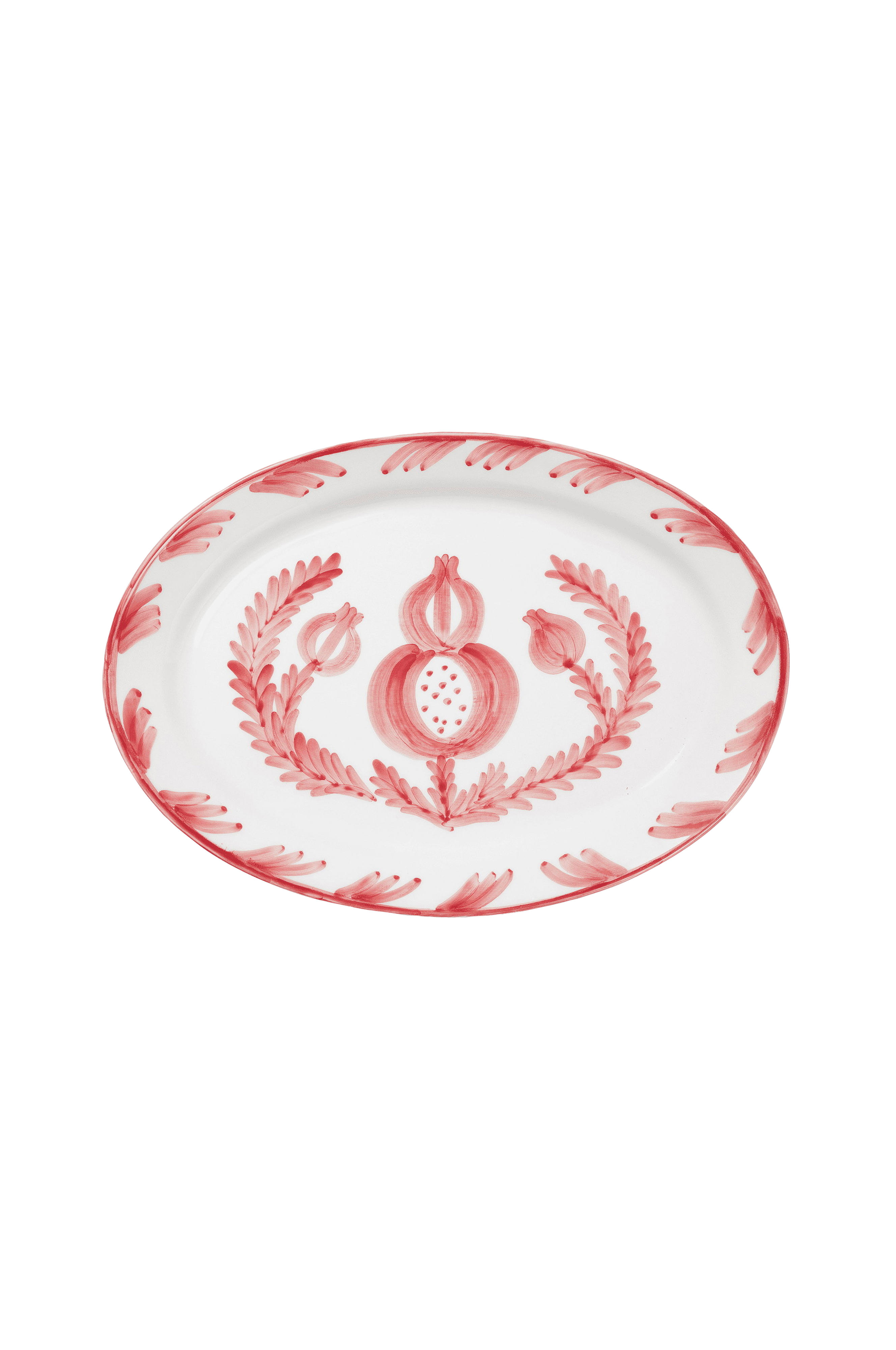 Vores Pomegranate serveringstallerken er håndlavet i lertøj ved hjælp af traditionelt håndværk fra Portugal. Udsmykket med et håndmalet pomegranate -motiv og en dekorativ kant. Kombiner den med vores andre produkter fra serien for at få en komplet borddækning, eller brug den alene.