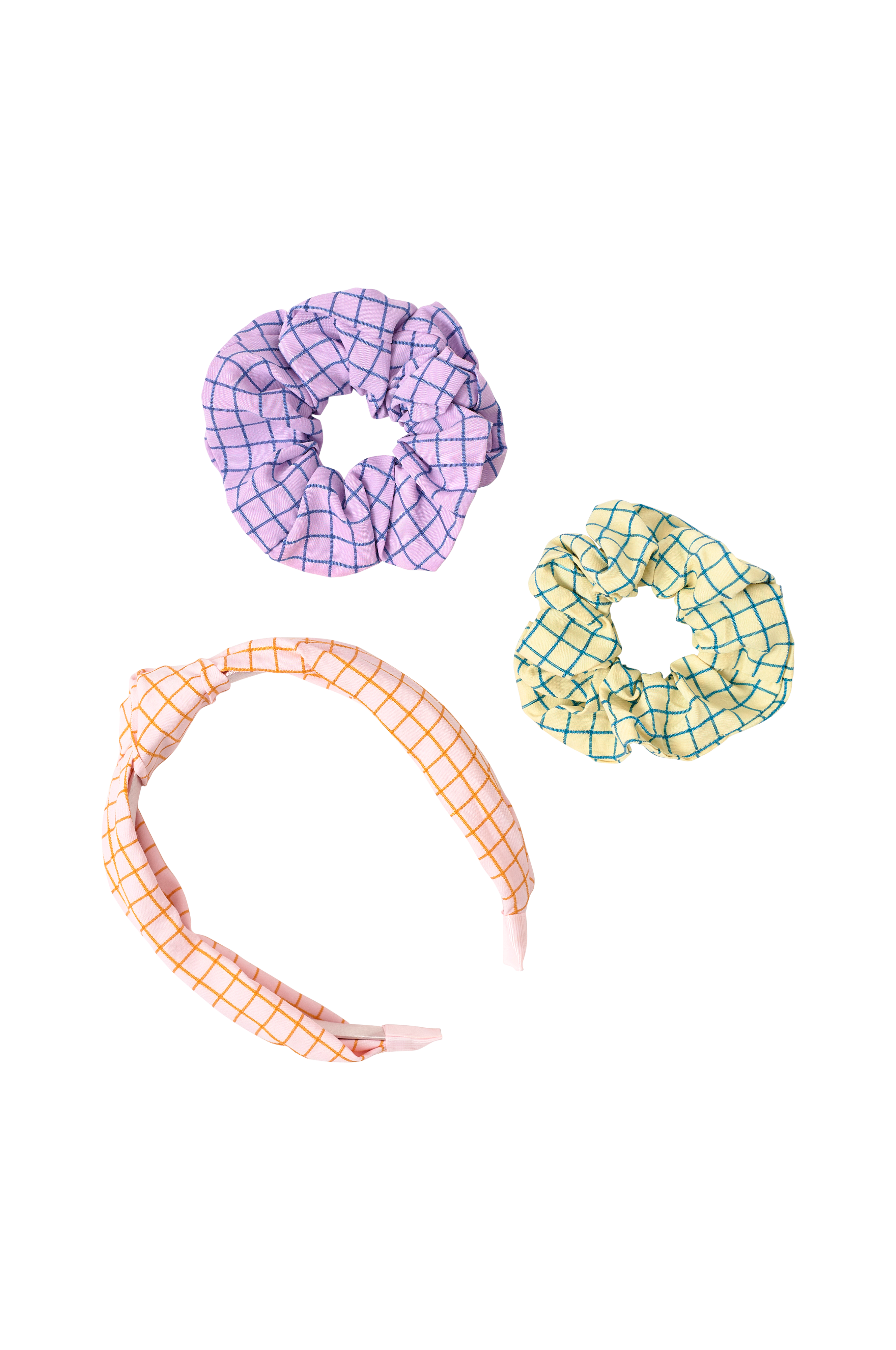 Sæt lpHumat med diadem og 2 stk. scrunchies. Diadem af plast beklædt med tekstil.