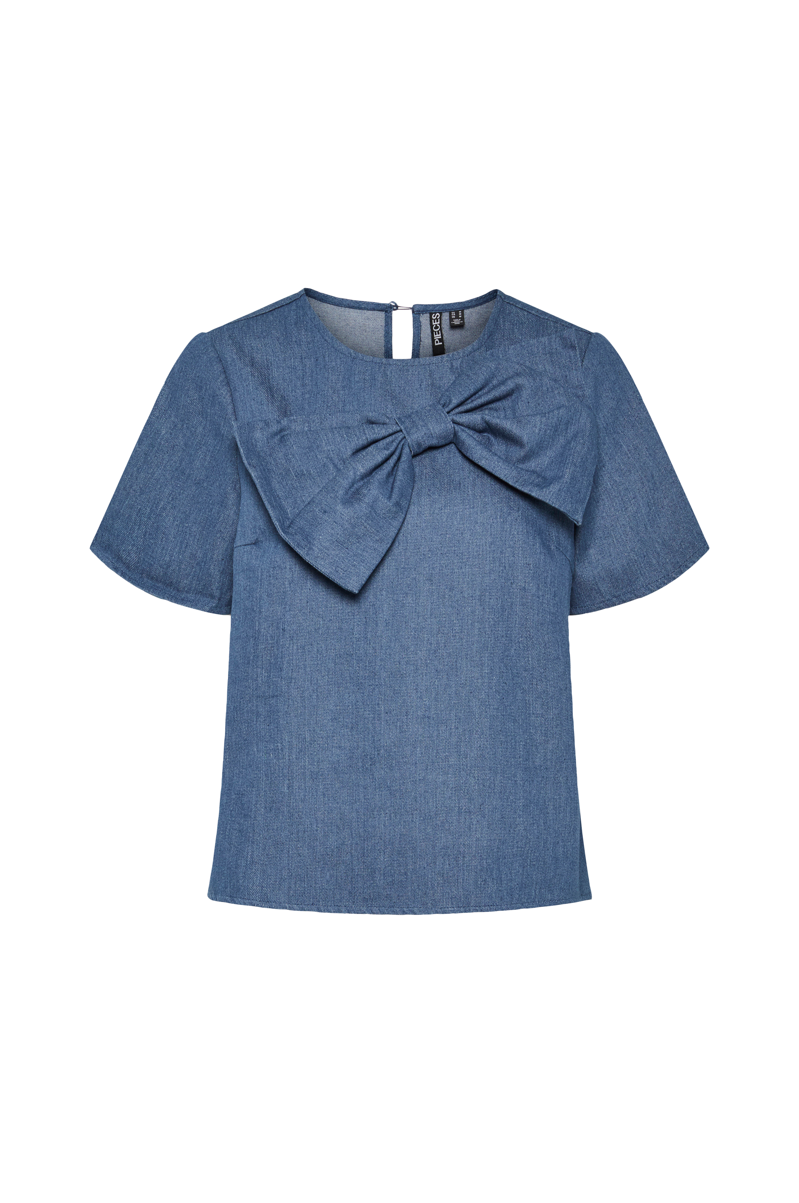 • Denimlook• Korte ærmer• Stor, påsyet sløjfe foran• Ventilation med knap i nakken