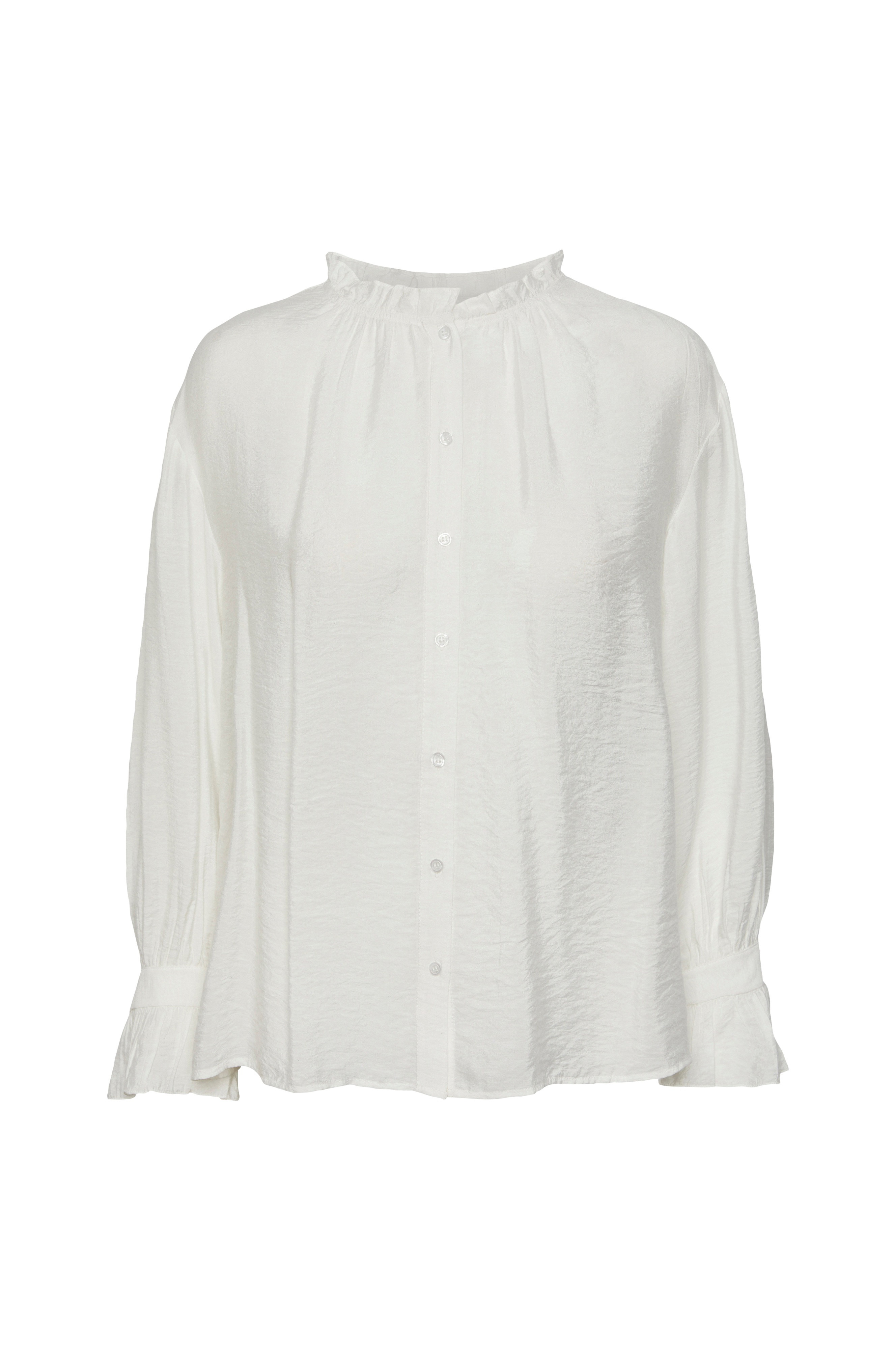 Vidunderlig bluse, blød og kølig mod huden, smukt snehvid farve (kold, ikke off-white). Passer lige så godt at have hængende som stoppet ind. Hav gerne en fin, nydelig vest i folklore…