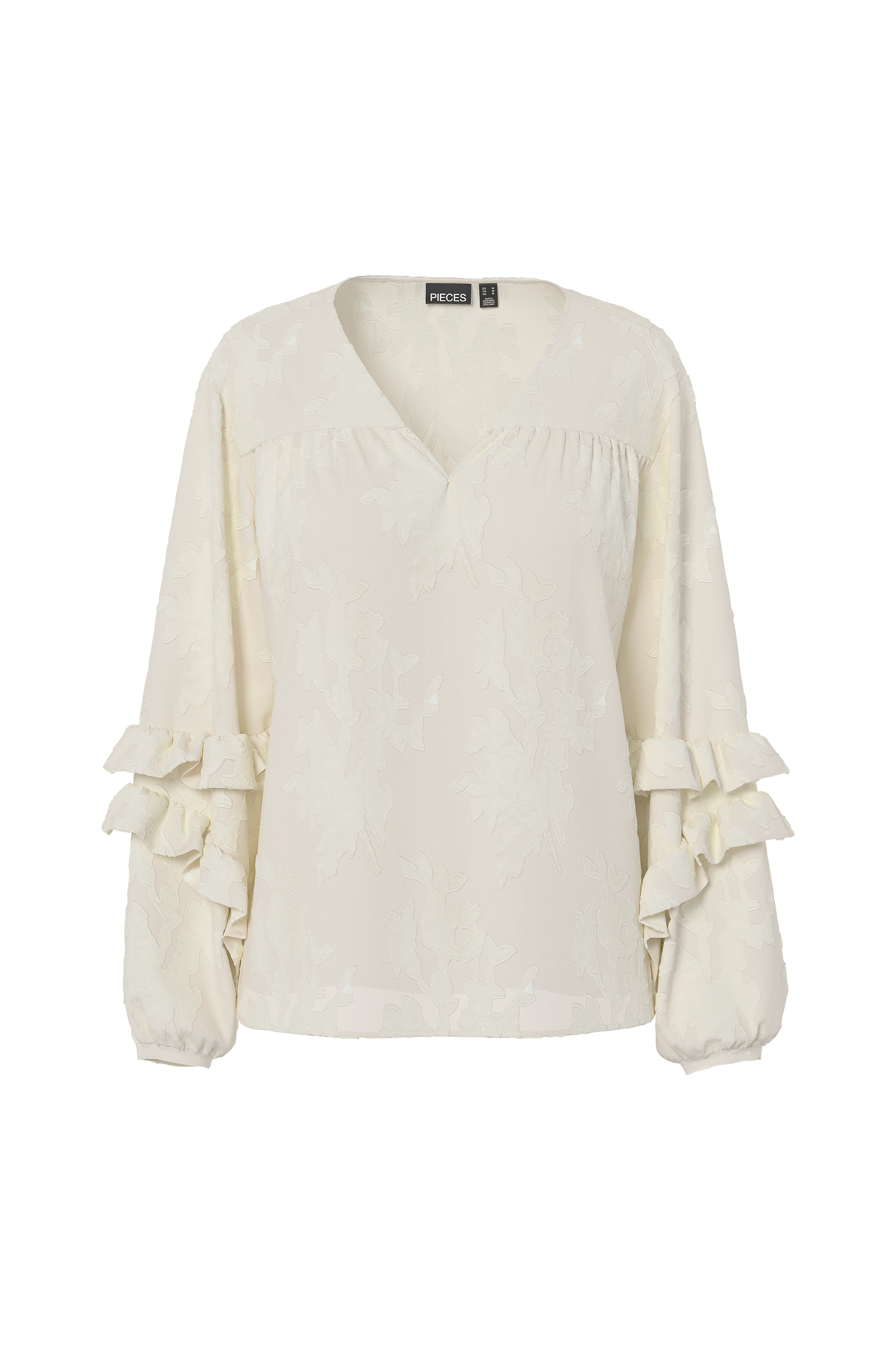 • Lange ærmer med volanter og tynde manchetter ved manchetterne
