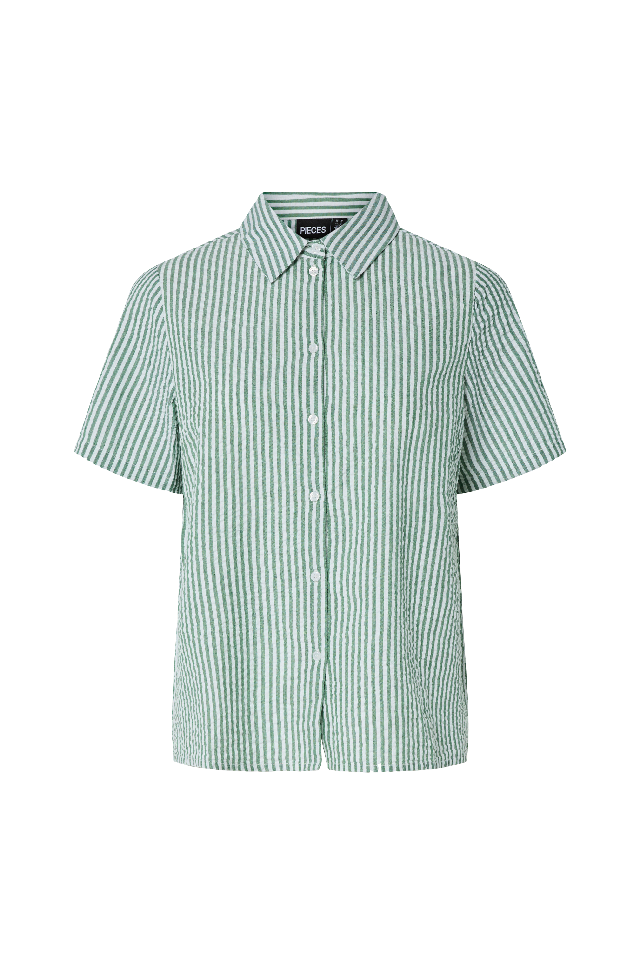 • Lige skjortemodel• Lille krave• Knapper foran• Kort ærme