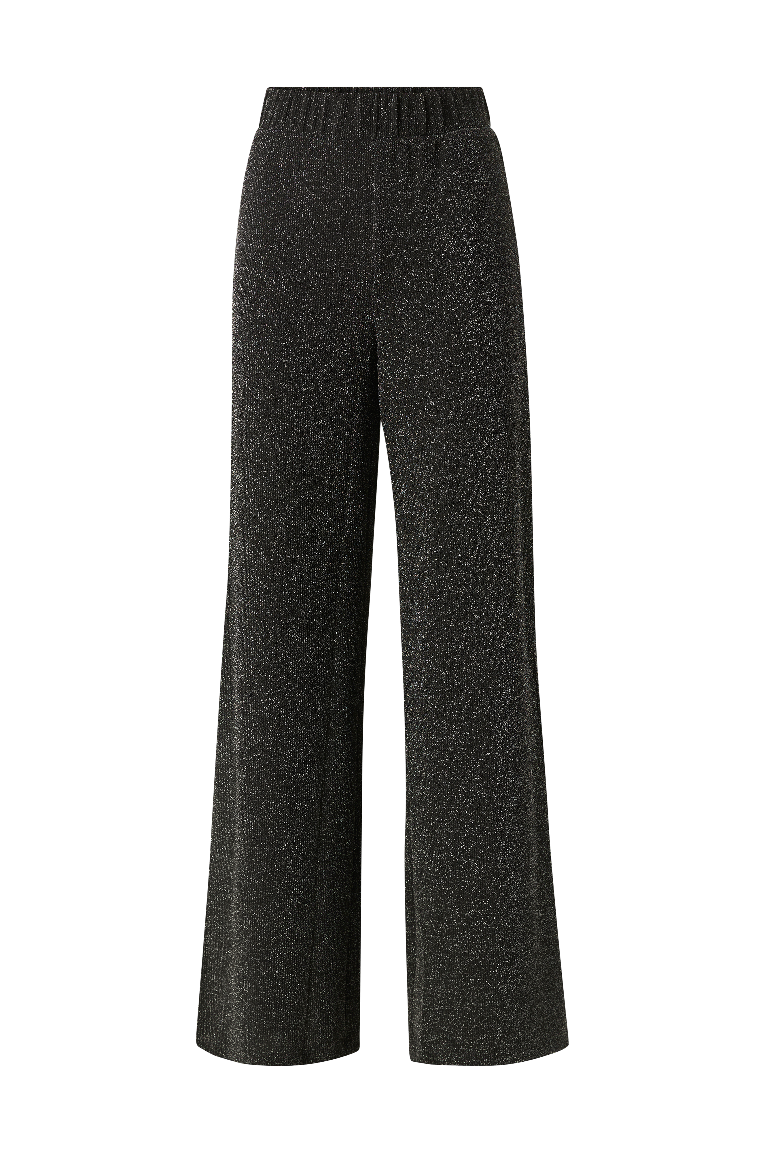 • Brede, glitrende bukser• Elastisk talje