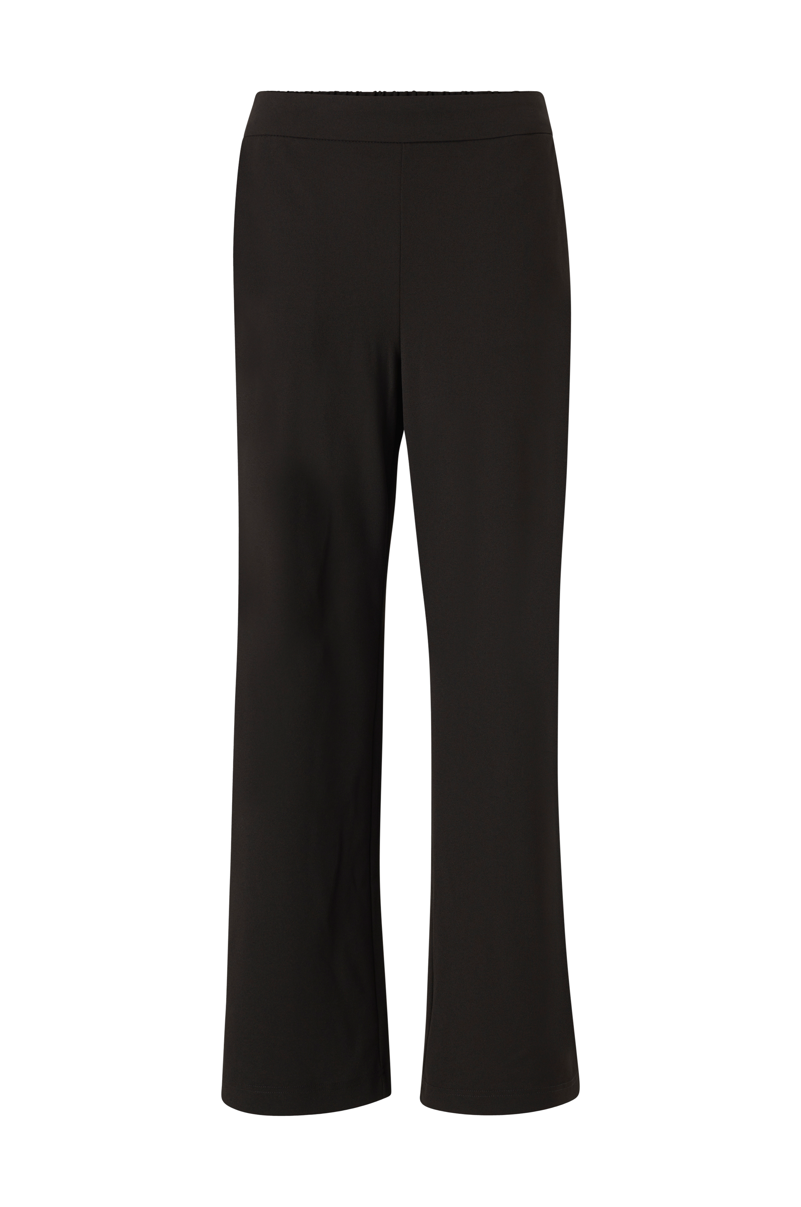 • Model med brede ben• Høj talje• Taljebånd med elastisk bånd bagpå• Skrå lommer foran• Indre benlængde: 76 cm i størrelse S