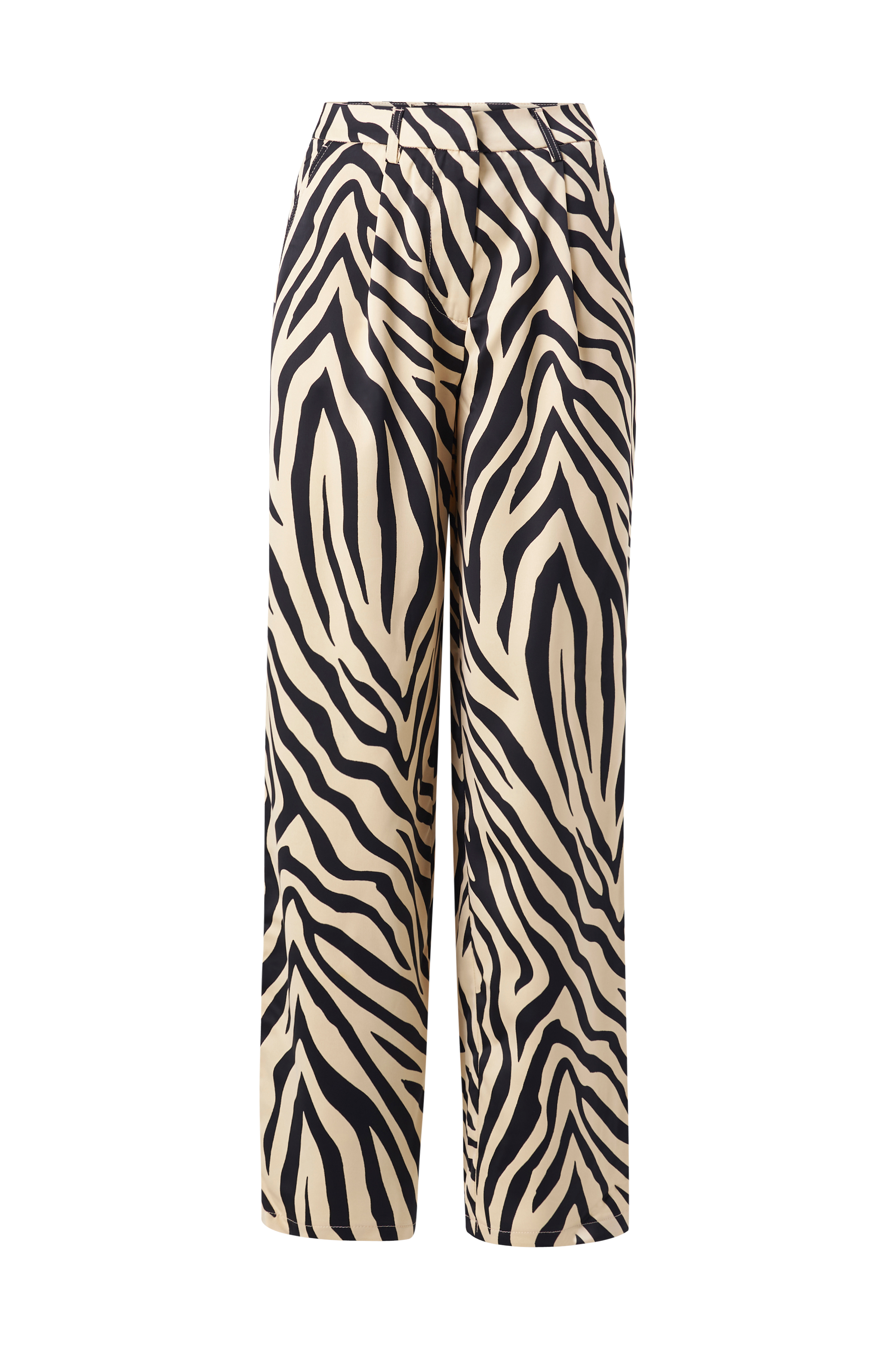 • Brede, zebramønstrede bukser i satin• Sidelommer• Snydelommer bagpå• Hægtelukning