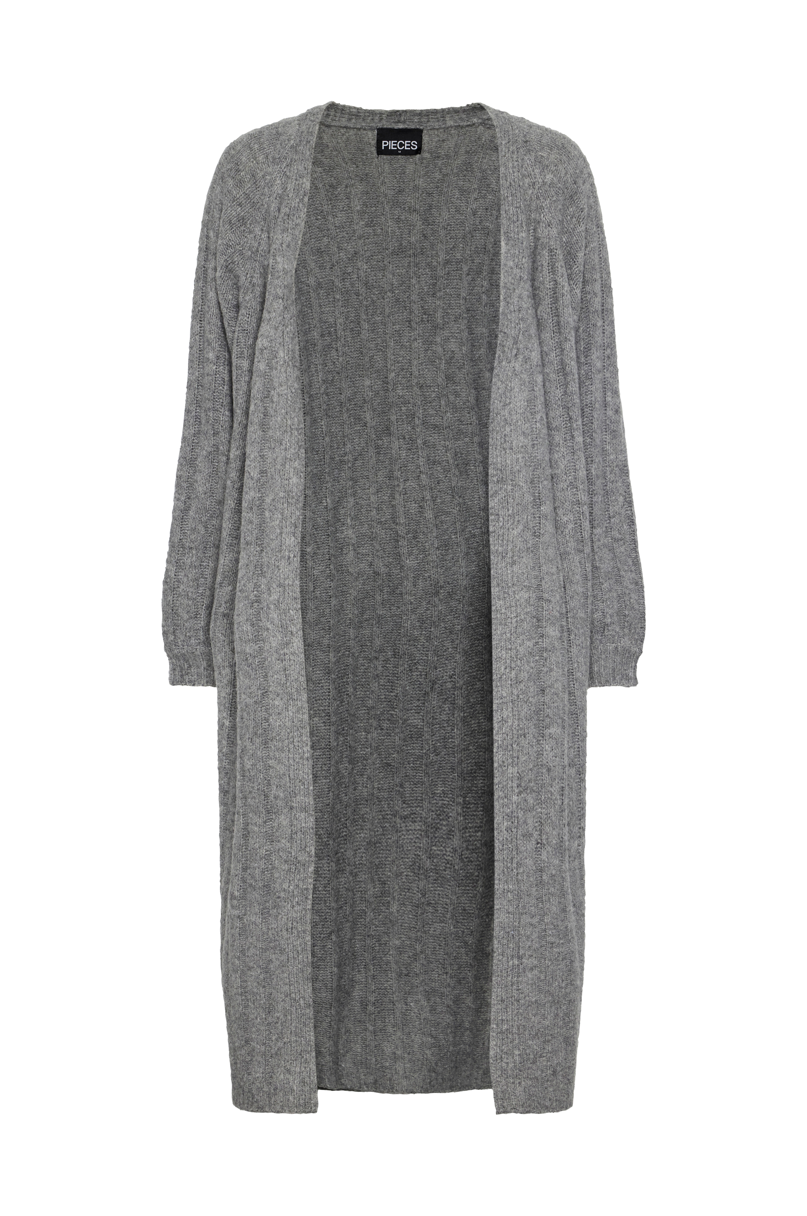 • Lang, strikket cardigan• Løs pasform• Ribbet design• Åben, uden knaplukning model• Ribmanchetter ved manchetterne