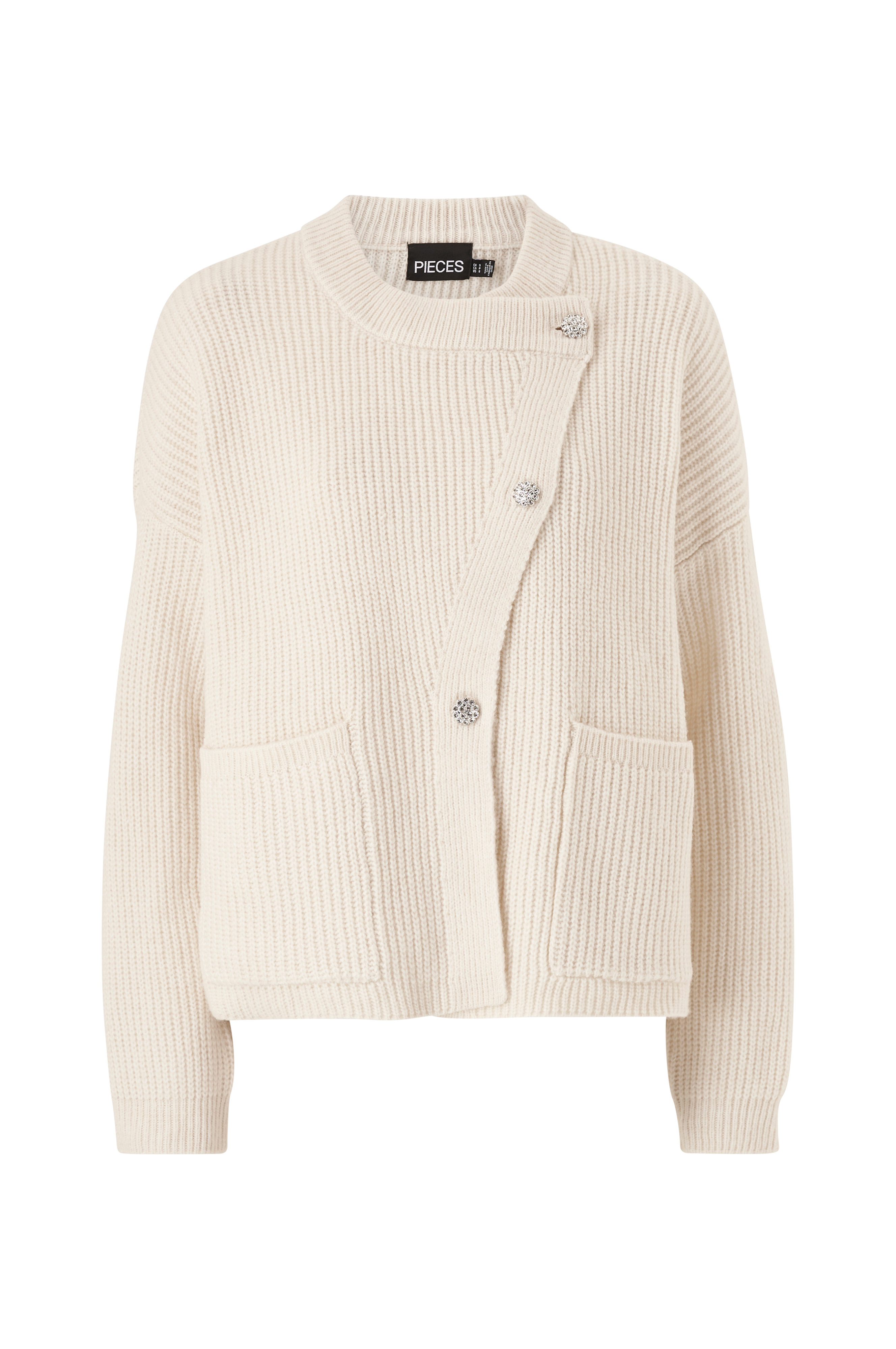 • Oversize model• Diagonal knapstolpe med knapper i rhinsten• Nedsænket skulder med langt ærme• Lommer