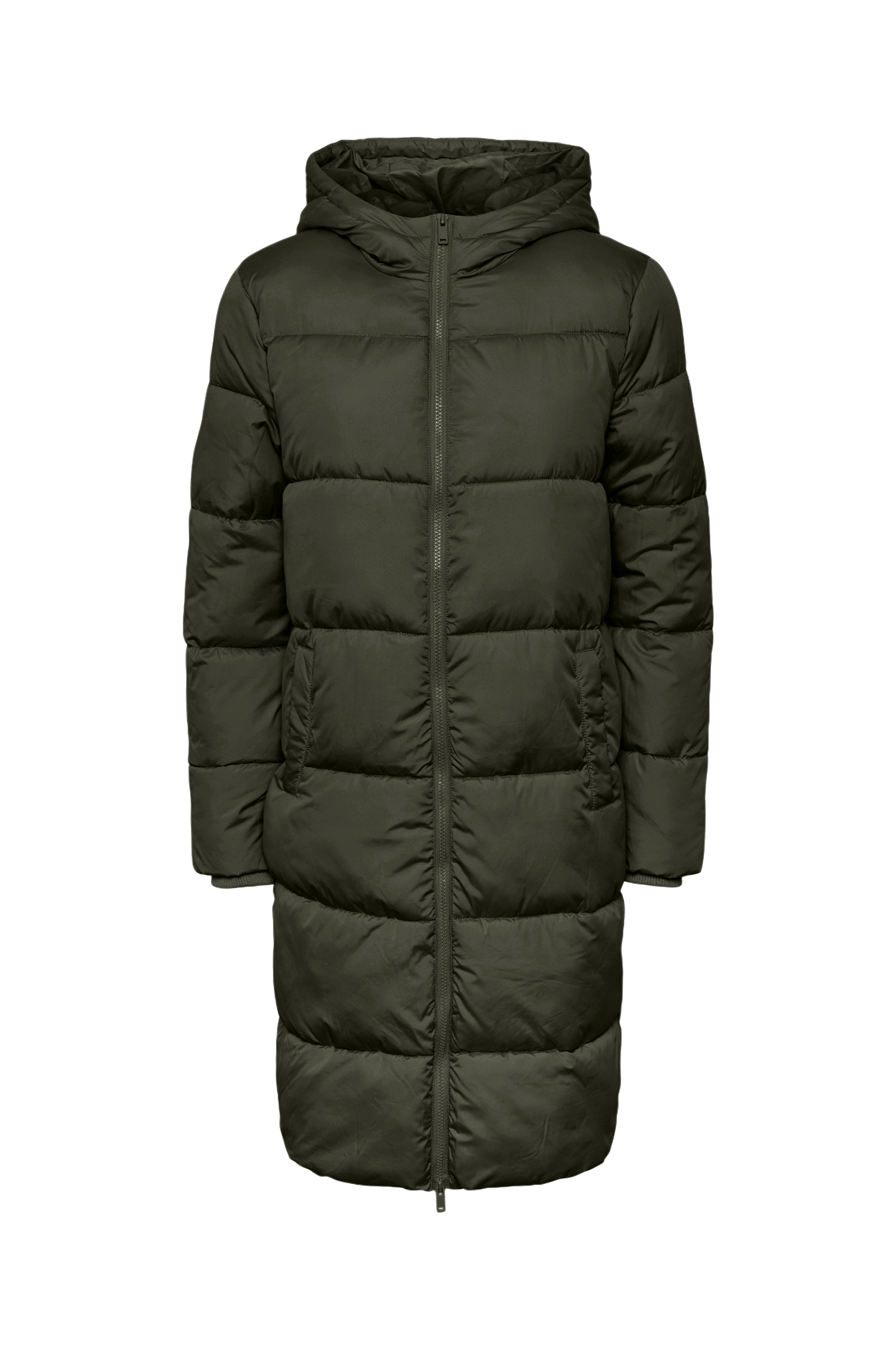• Quiltet, foret jakke • Lang model • Fast hætte • Lynlås • To lynlåslommer • Ribmanchetter ved manchetterne • Længde: 96 cm i størrelse S • Produktet indeholder genindvundet materiale, som genbruges for at reducere mængden af affald samtidigt med at der ikke anvendes nye ressourcer.