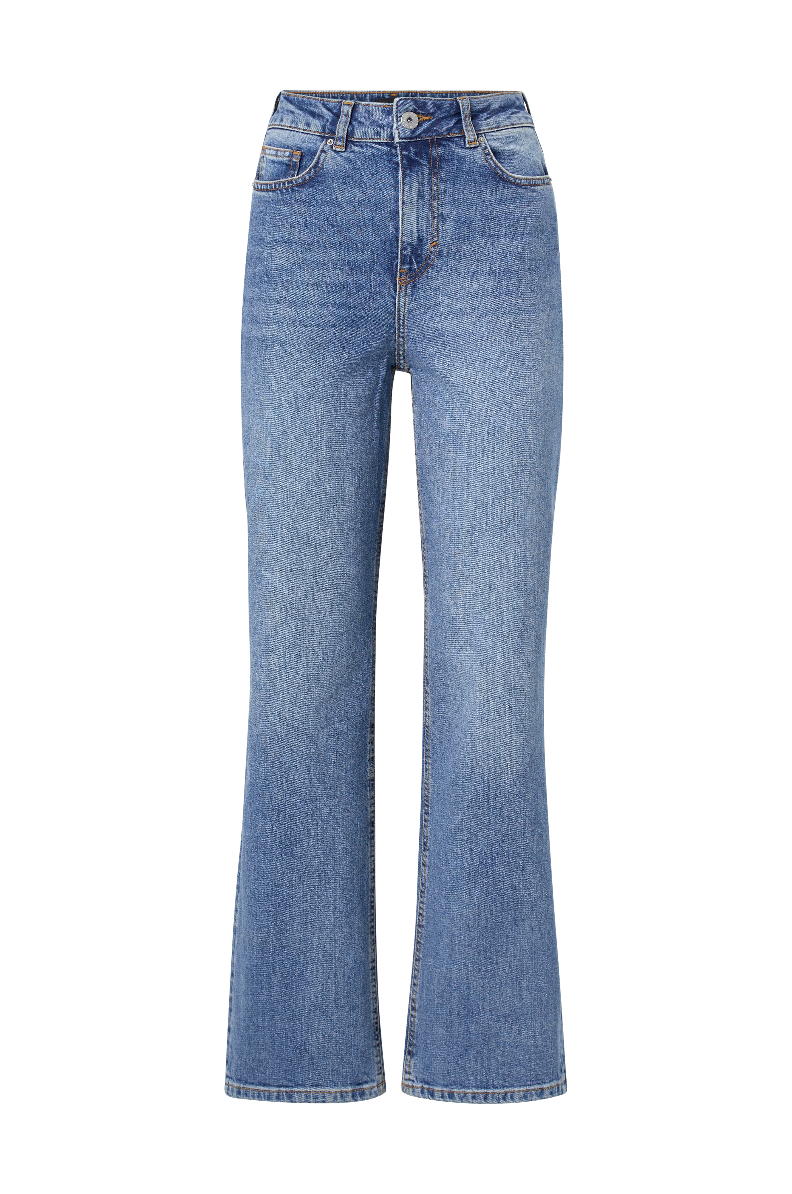 • Brede, lige ben• Høj talje• Fem lommer• Gylp med lynlås• Fremstillet af denim med let stræk