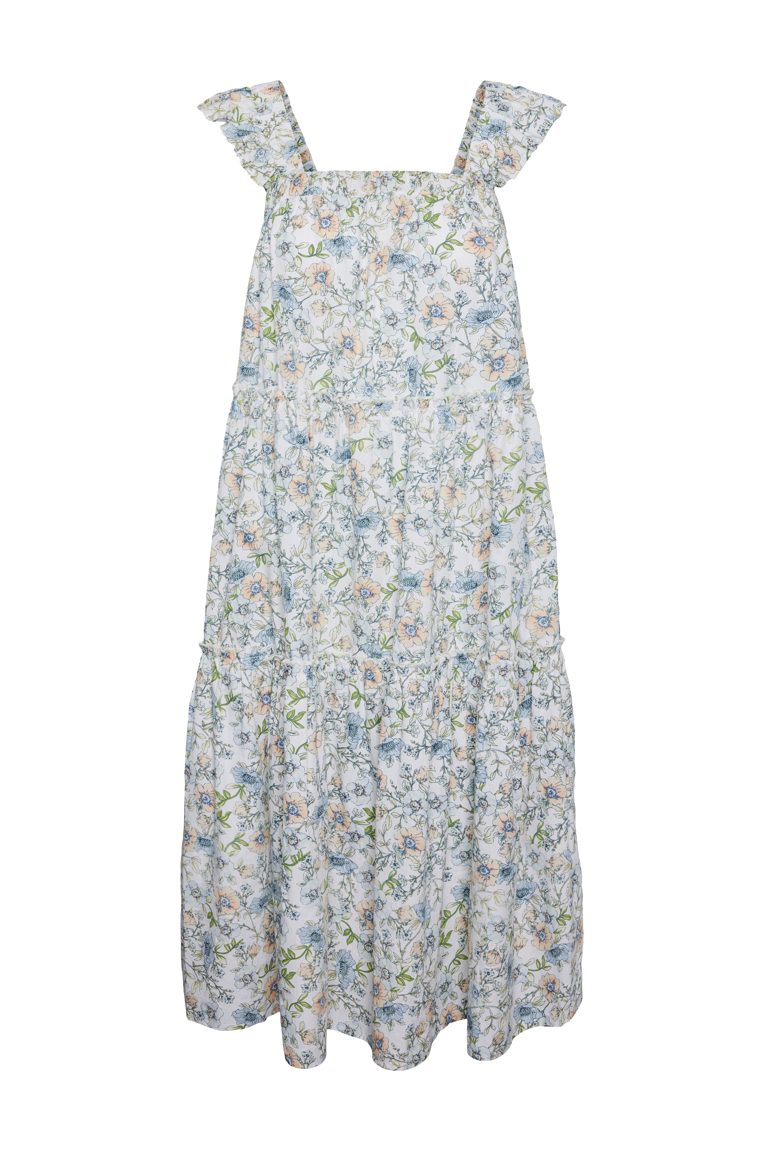 • Ærmeløs model med svaj• Indlagt elastik i overkanten• Elastiske skulderstropper med volanter• Defineret talje• Bred volant nederst• Længde: 122 cm i størrelse S