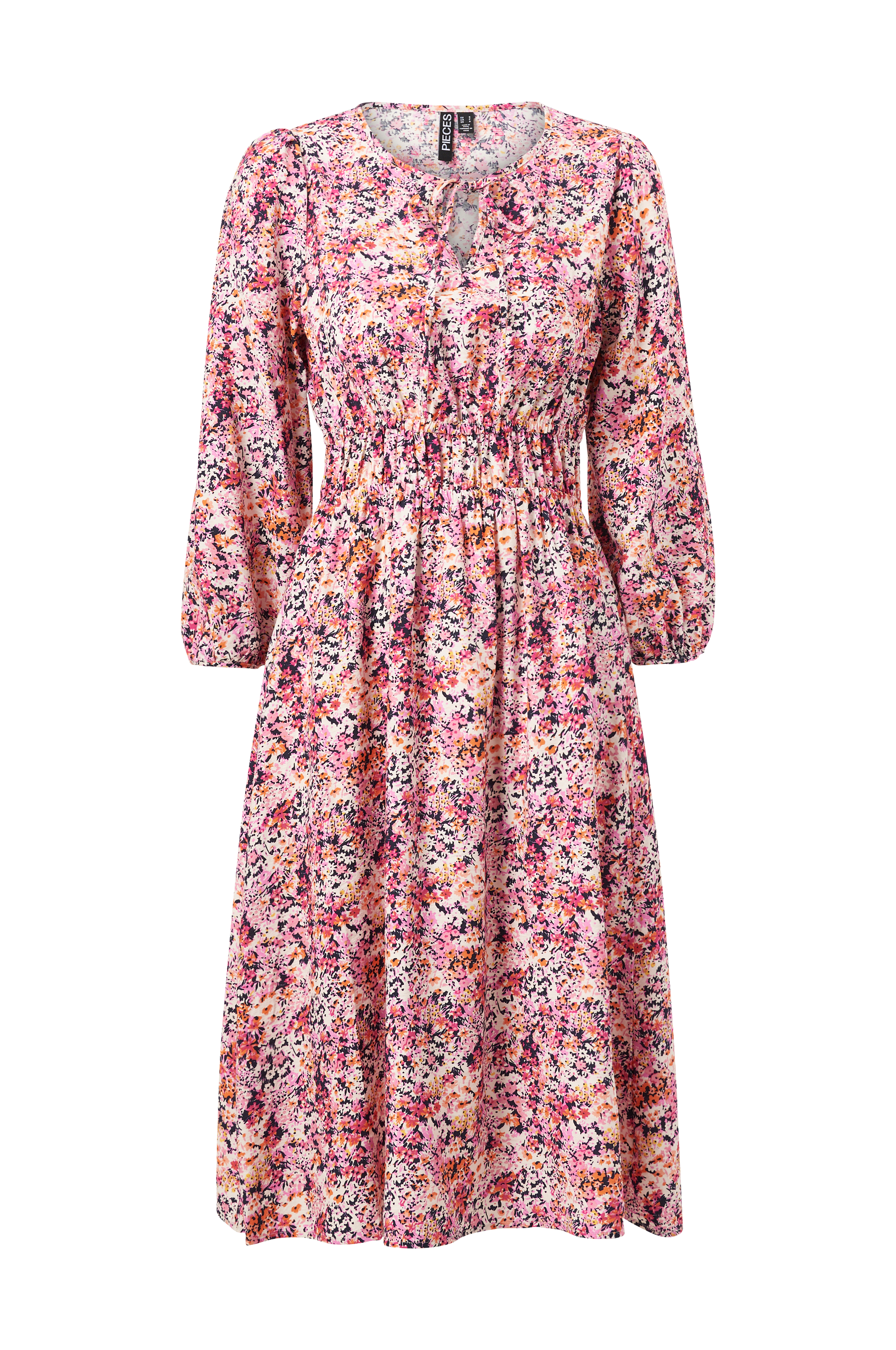 • V-formet halsudskæring med bindebånd• Lange ærmer• Elastisk bånd ved taljen• Længde: 113 cm i størrelse S