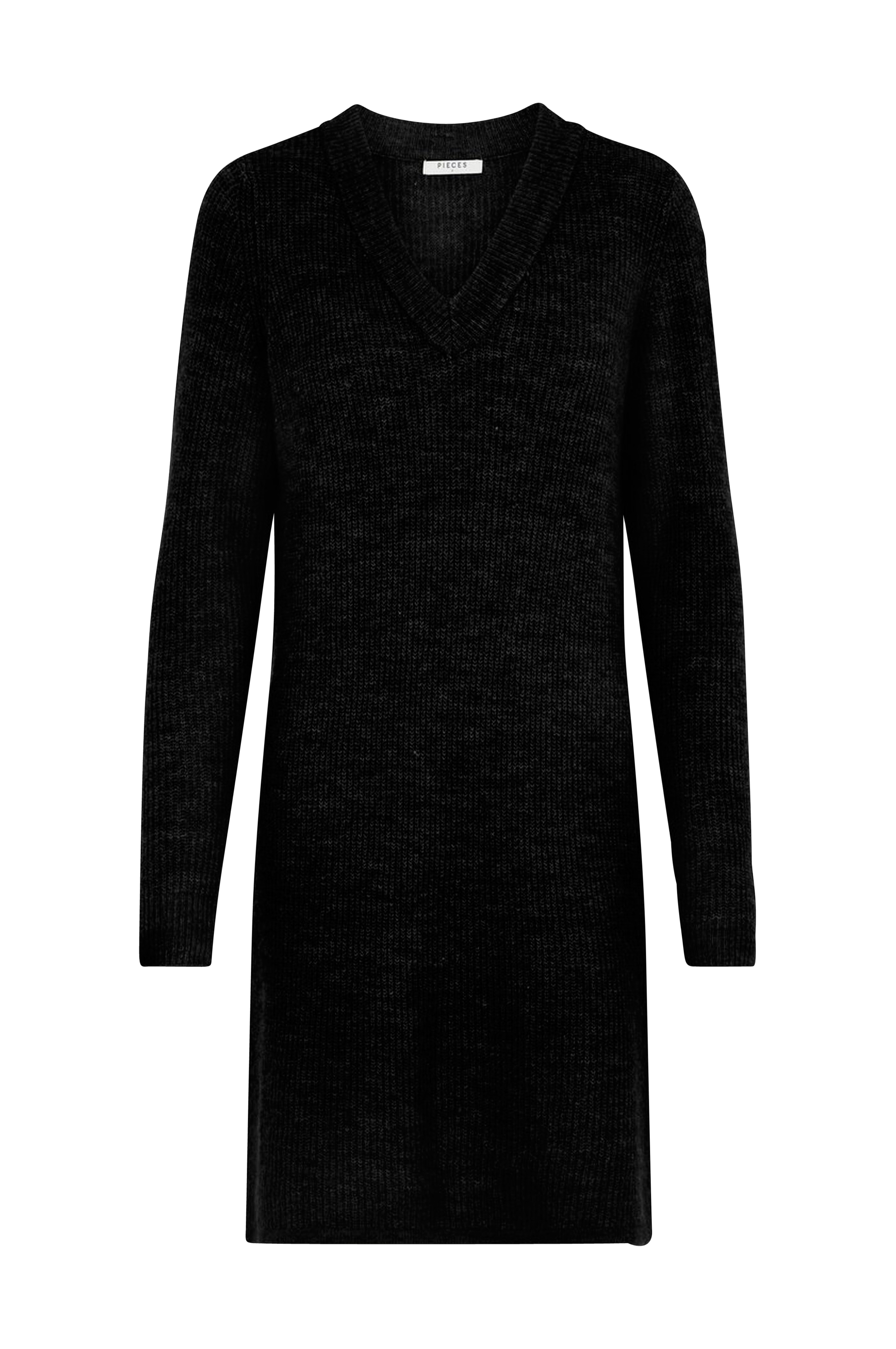 Kjole pcEllen LS V-neck Knit Dress fra Pieces. Lige model i ribstrik med v-hals som har dobbelt kant. Længde ca. 88 cm i str. S.
