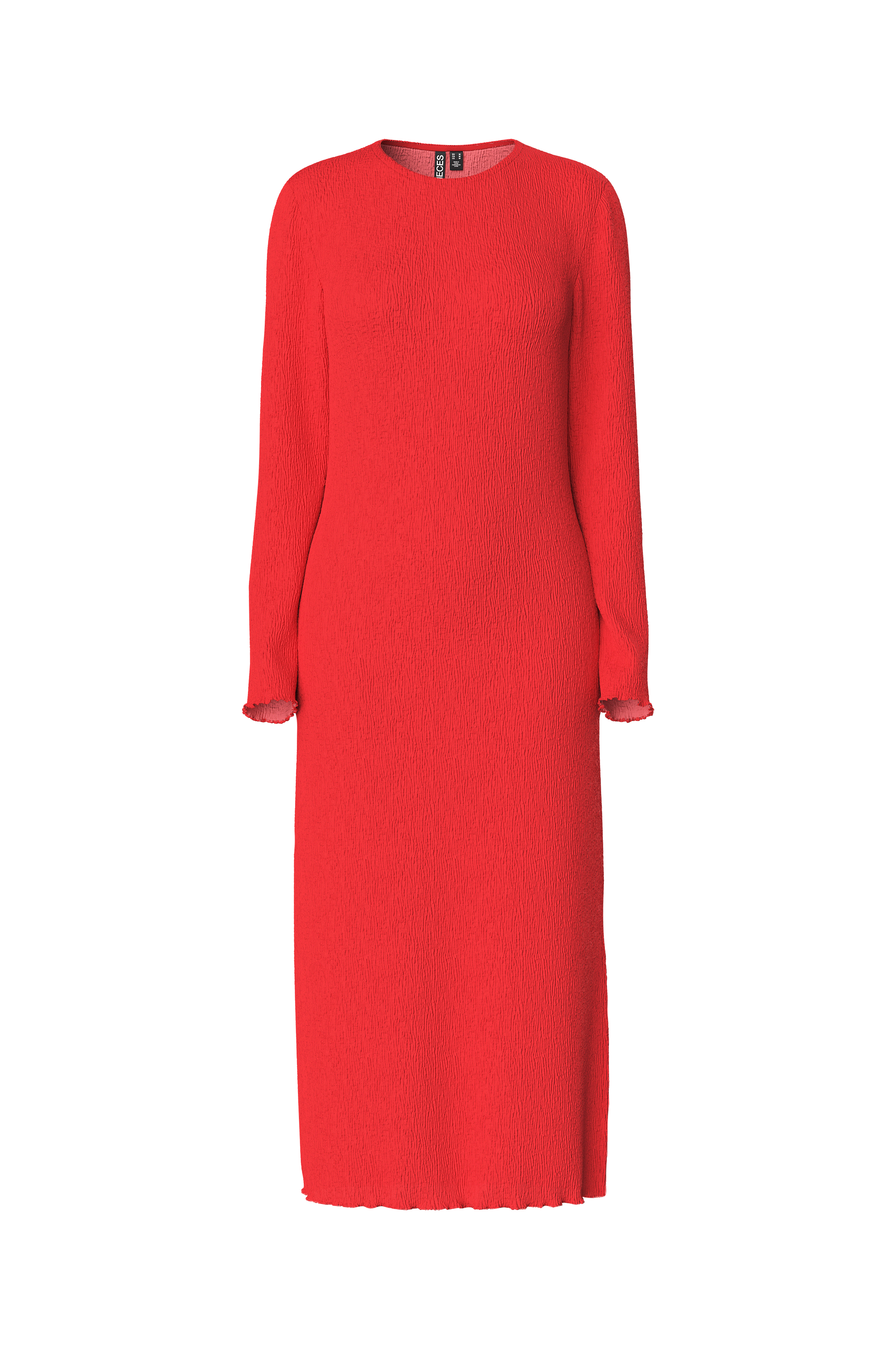 • Lang, mønstervævet model med figursyet pasform• Rund hals• Ekstra langt ærme• Slids nederst i den ene side• Bølgede kanter ved manchetterne og nederst• Længde: 129 cm i størrelse S