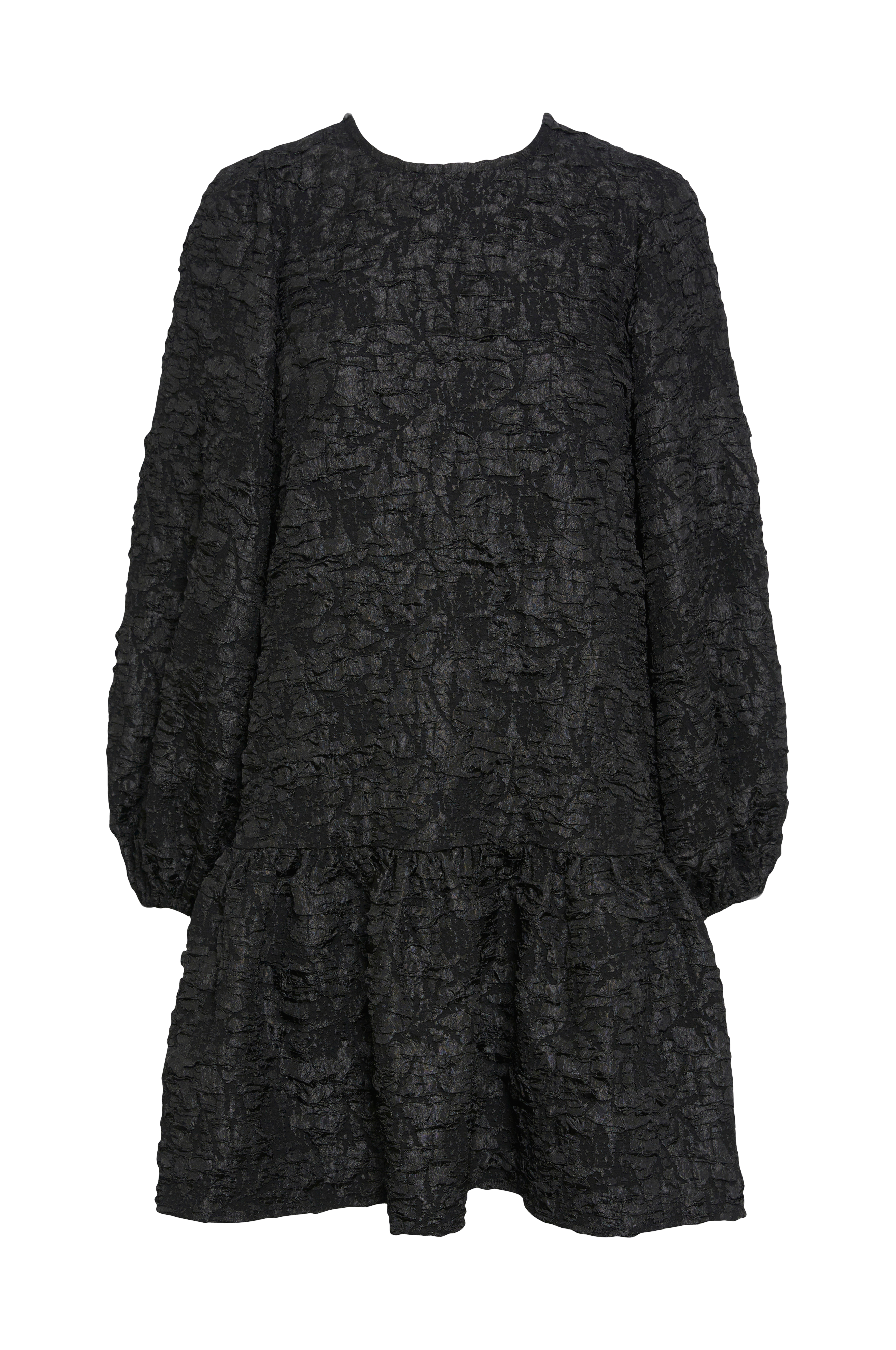 • Kort model med svaj i strukturel kvalitet• Rund hals• Dybt skåret ryg med tre bindebånd• Ekstra bredt ærme med elastik ved manchetterne• Bred volant ved nederste kant• Længde: 90 cm i størrelse S
