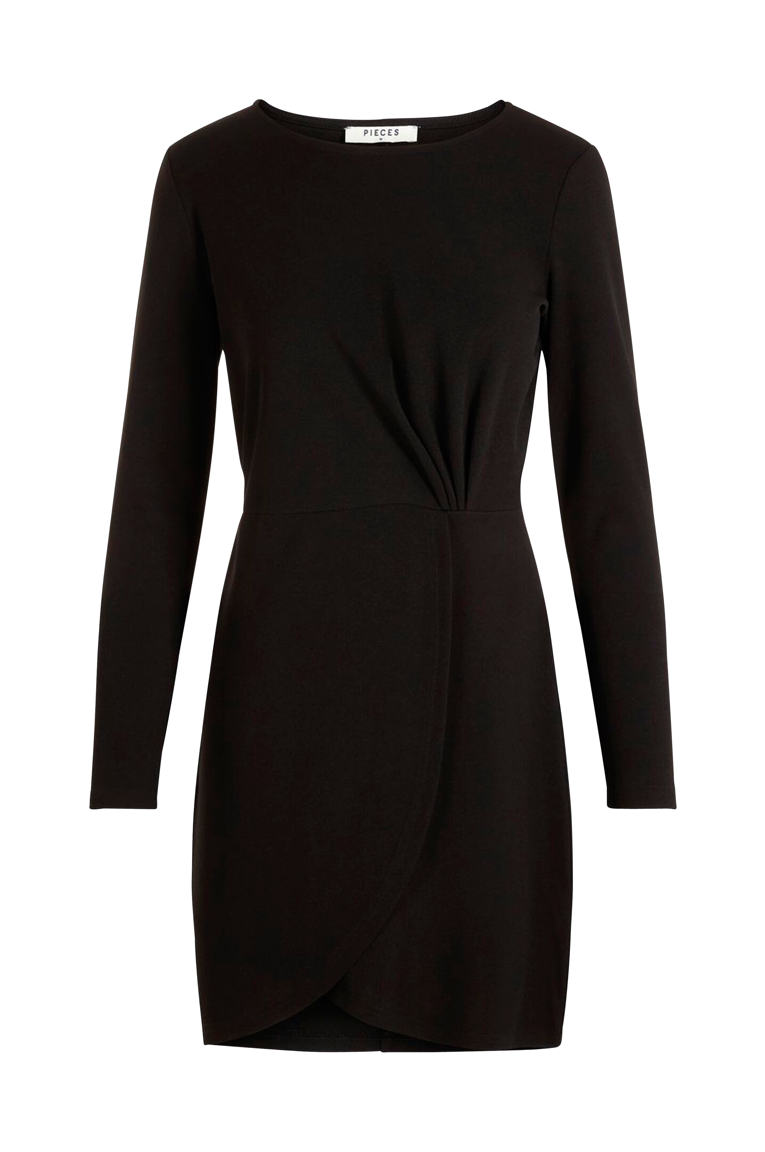 Kjole pcJunes LS Dress fra Pieces i stilren model med lange ærmer og slå-om i underdelen. Lagte læg i taljen foran giver fin draperingseffekt. I jersey. Længde ca. 91 cm i str. S.