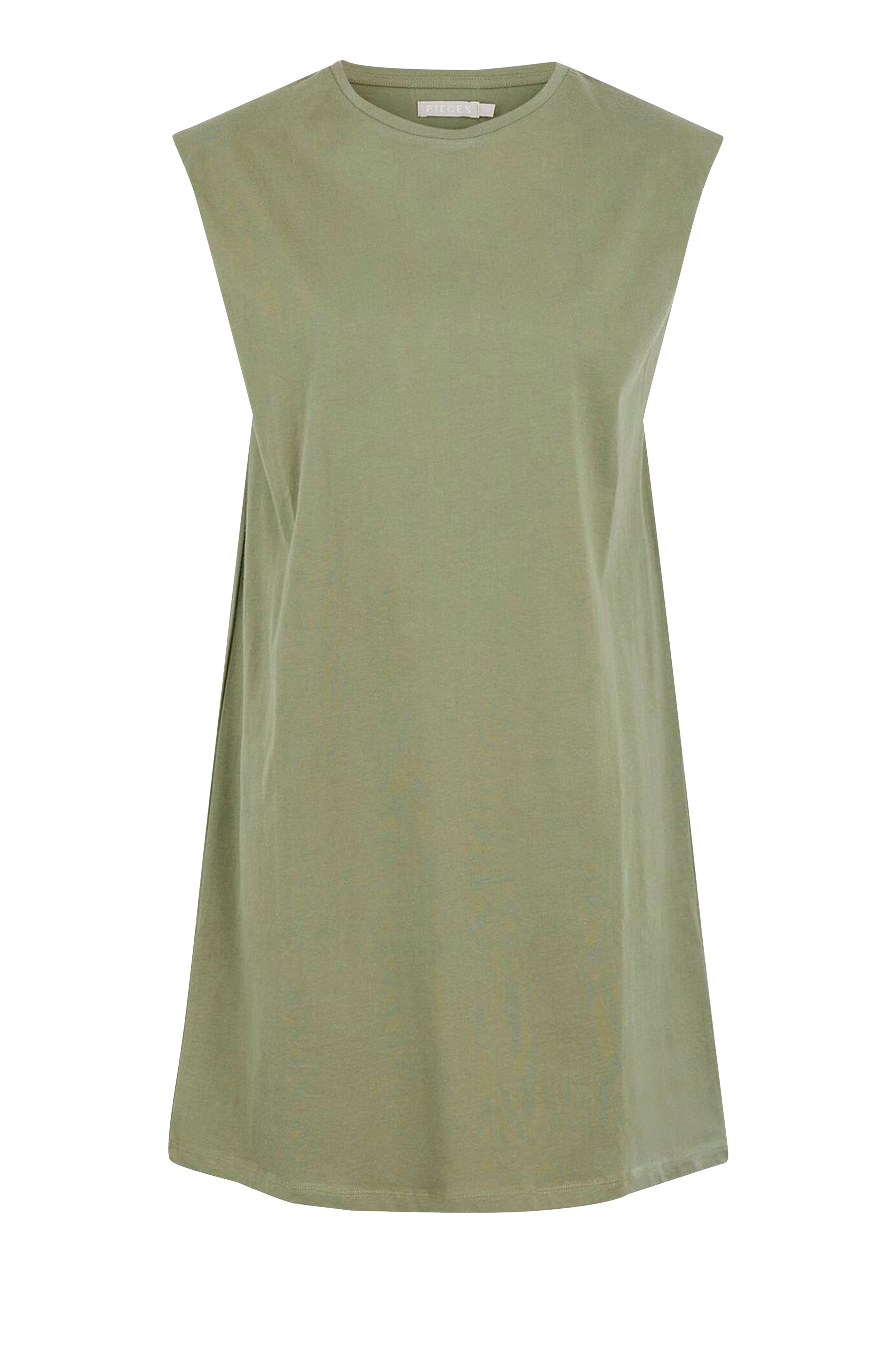 Kjole pcLiz SL Dress fra Pieces. Ærmeløs model i smidig jersey med let A-formet snit. Rund hals med ribkant og indvendige skulderpuder. Længde ca. 93 cm i str. S.
