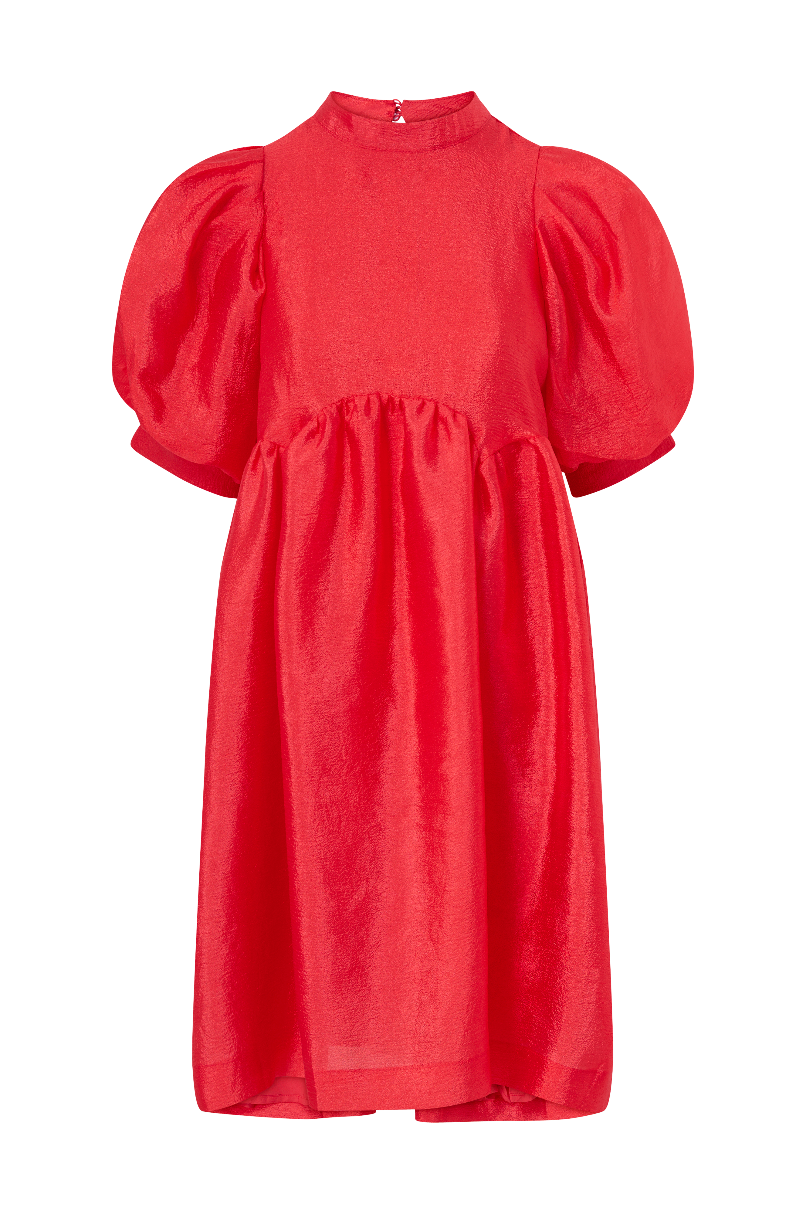 • Halvlange, voluminøse ballonærmer• Høj udskæring med ventilation og knapper bagpå• Defineret, rynket talje• Kvalitet med glans• Foret• Længde: 90 cm i størrelse S