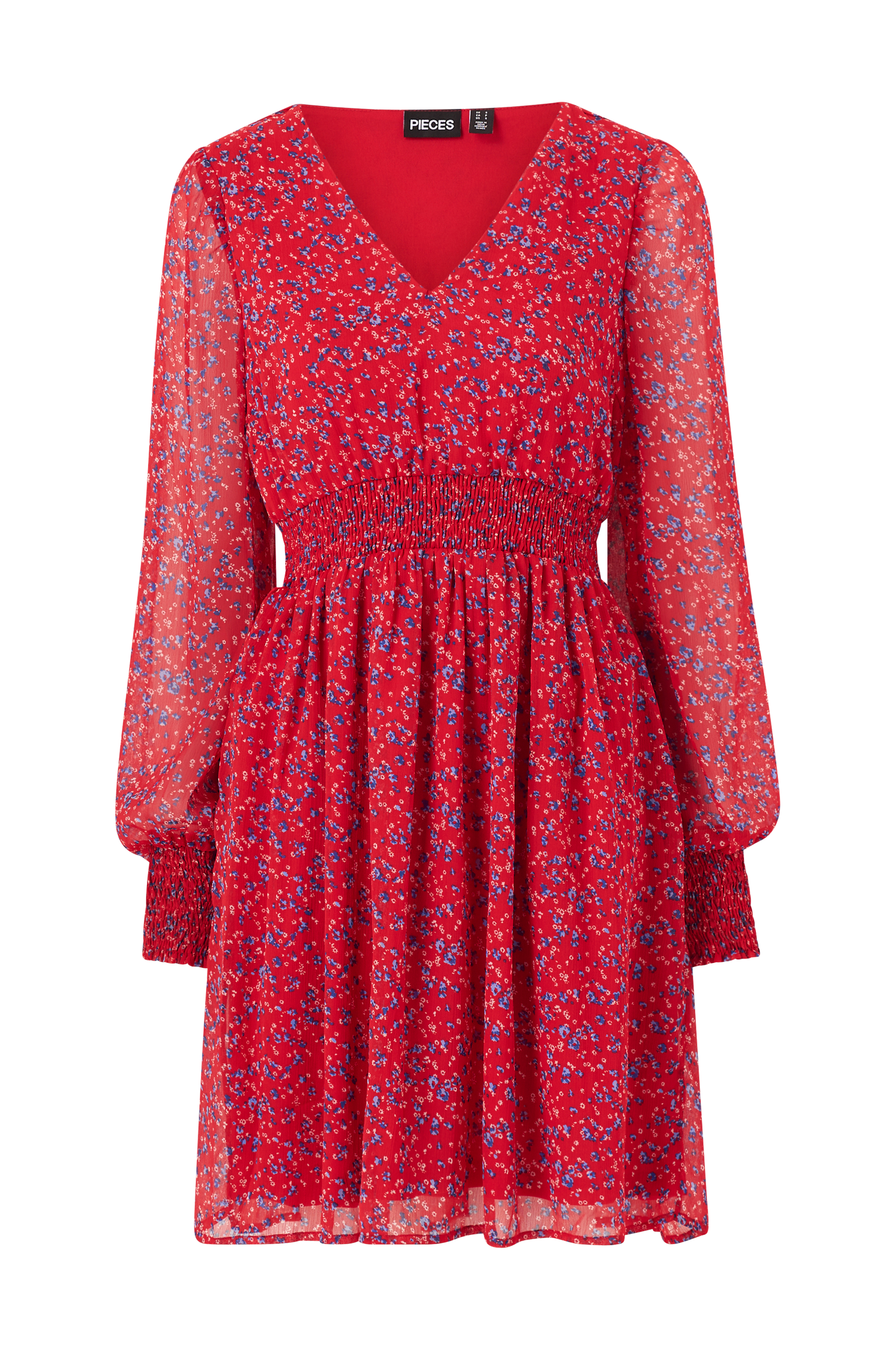 • Lange, transparente ærmer med smock ved manchetterne