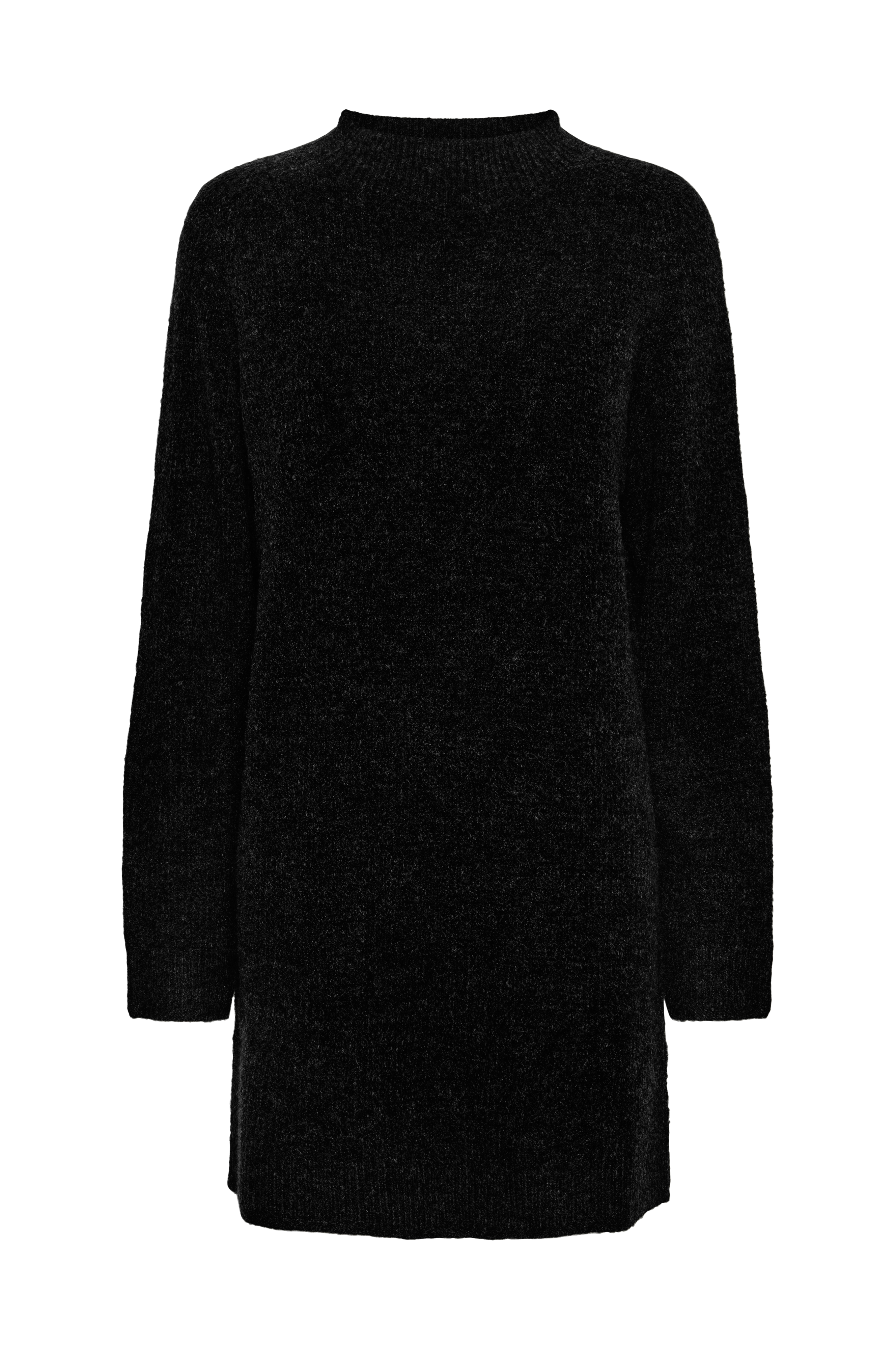 • Lige, uformel model• Høj, ribstrikket krave• Langt ærme• Ribstrik ved manchetterne og nederst• Længde: 88 cm i størrelse S