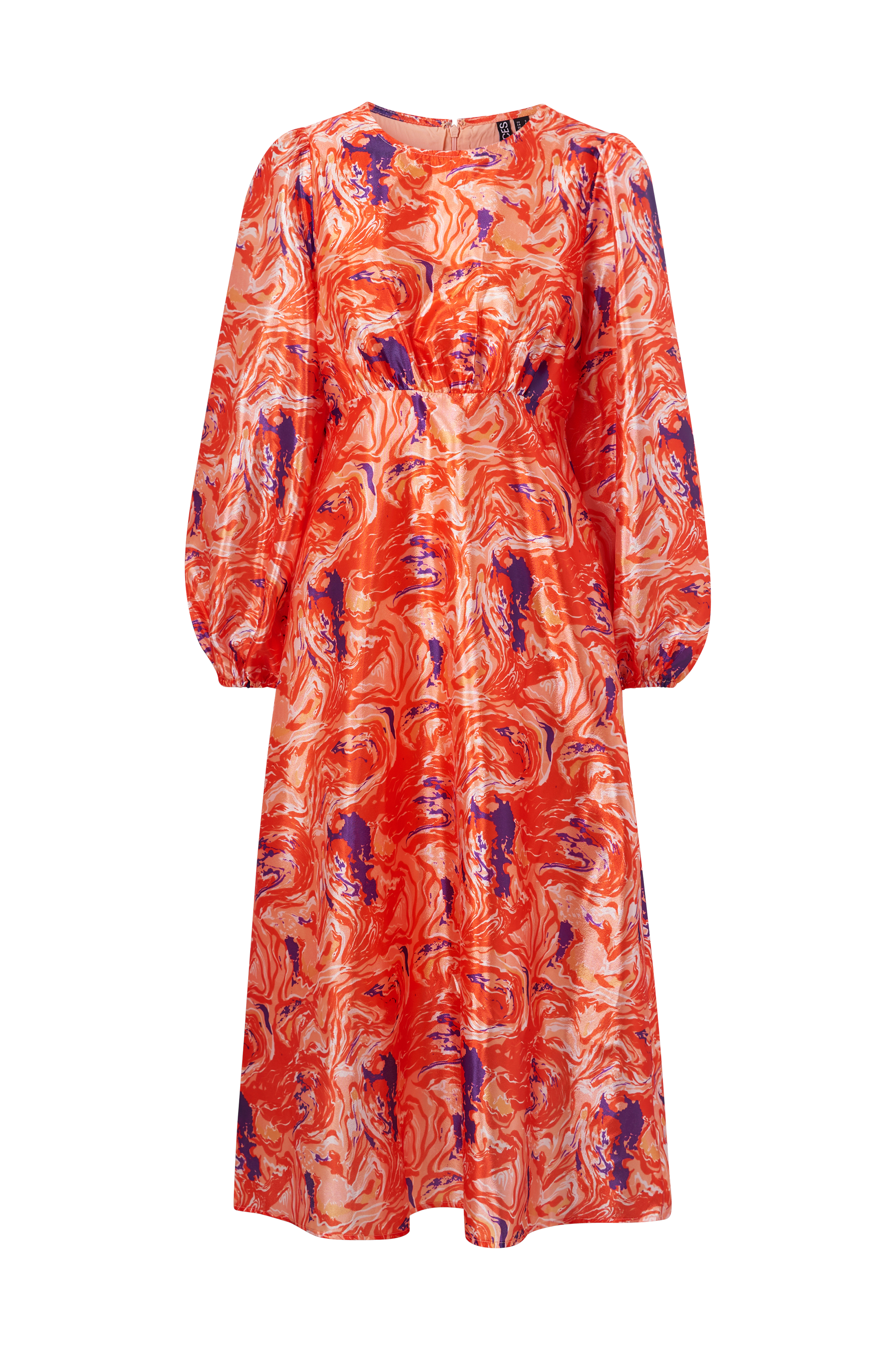 • Midikjole med svaj• Ballonærmer med elastiske manchetter• Høj, rynket talje• Skjult lynlås i ryggen• Kvalitet med glans• Vævet for• Længde: 123 cm i størrelse S
