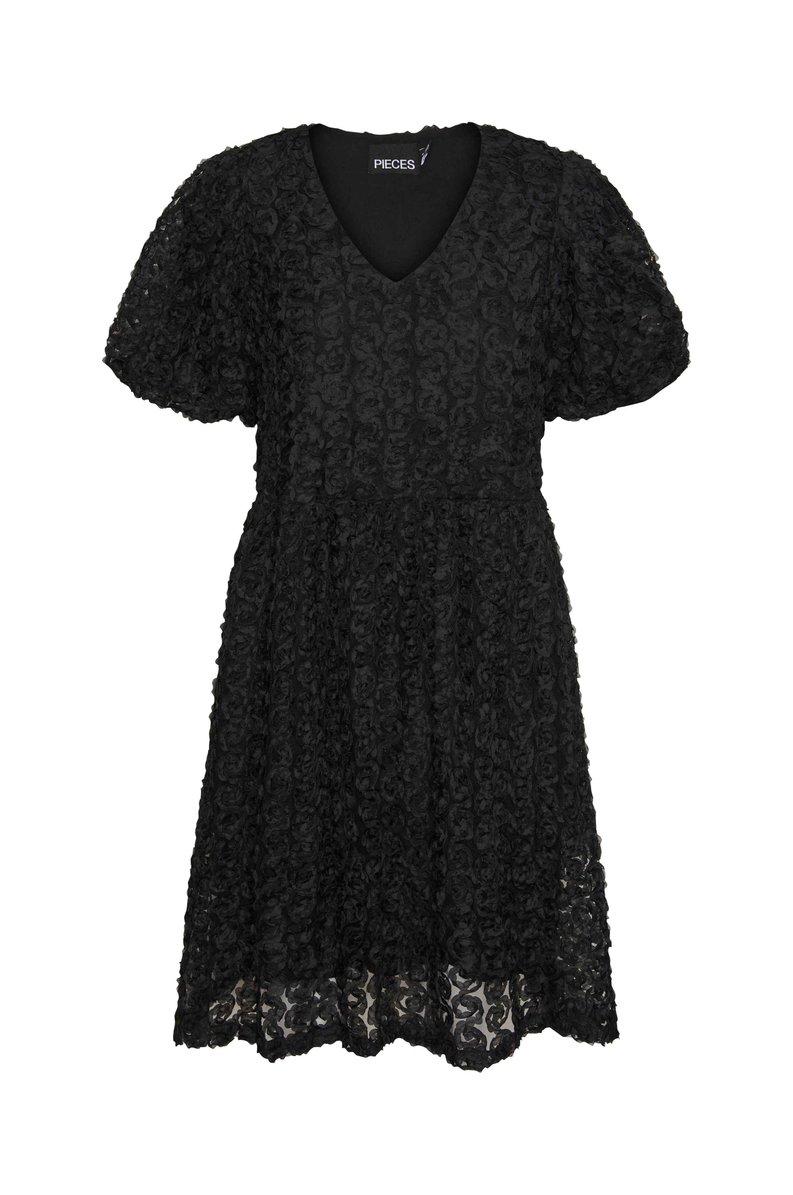 • Kjole i mesh med heldækkende 3D-blomster i tekstil• V-udskæring• Korte ballonærmer• Uformel pasform• Vævet for• Længde: 95 cm i størrelse S
