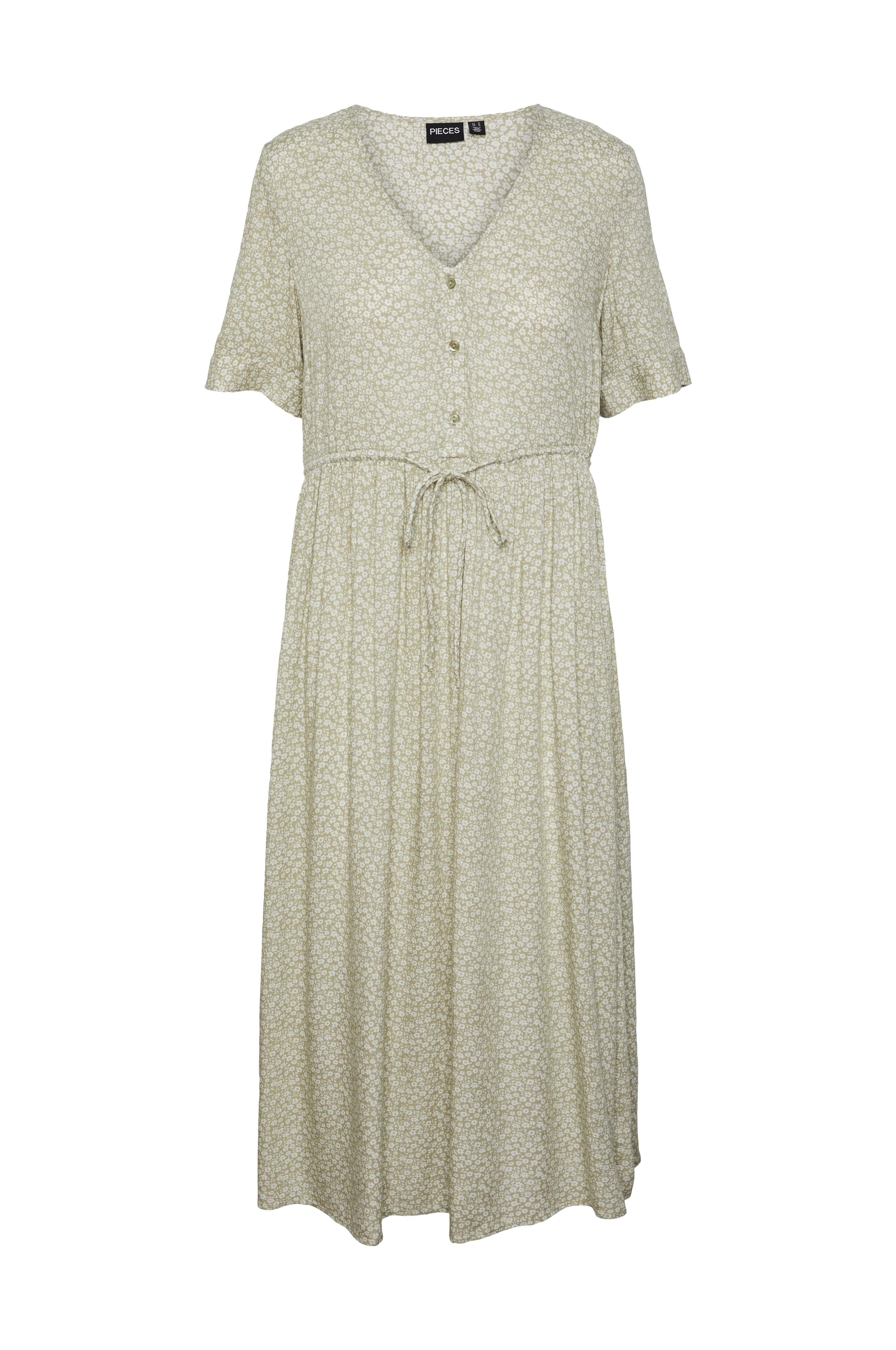 • V-formet halsudskæring med knaplukning foran ned til taljen