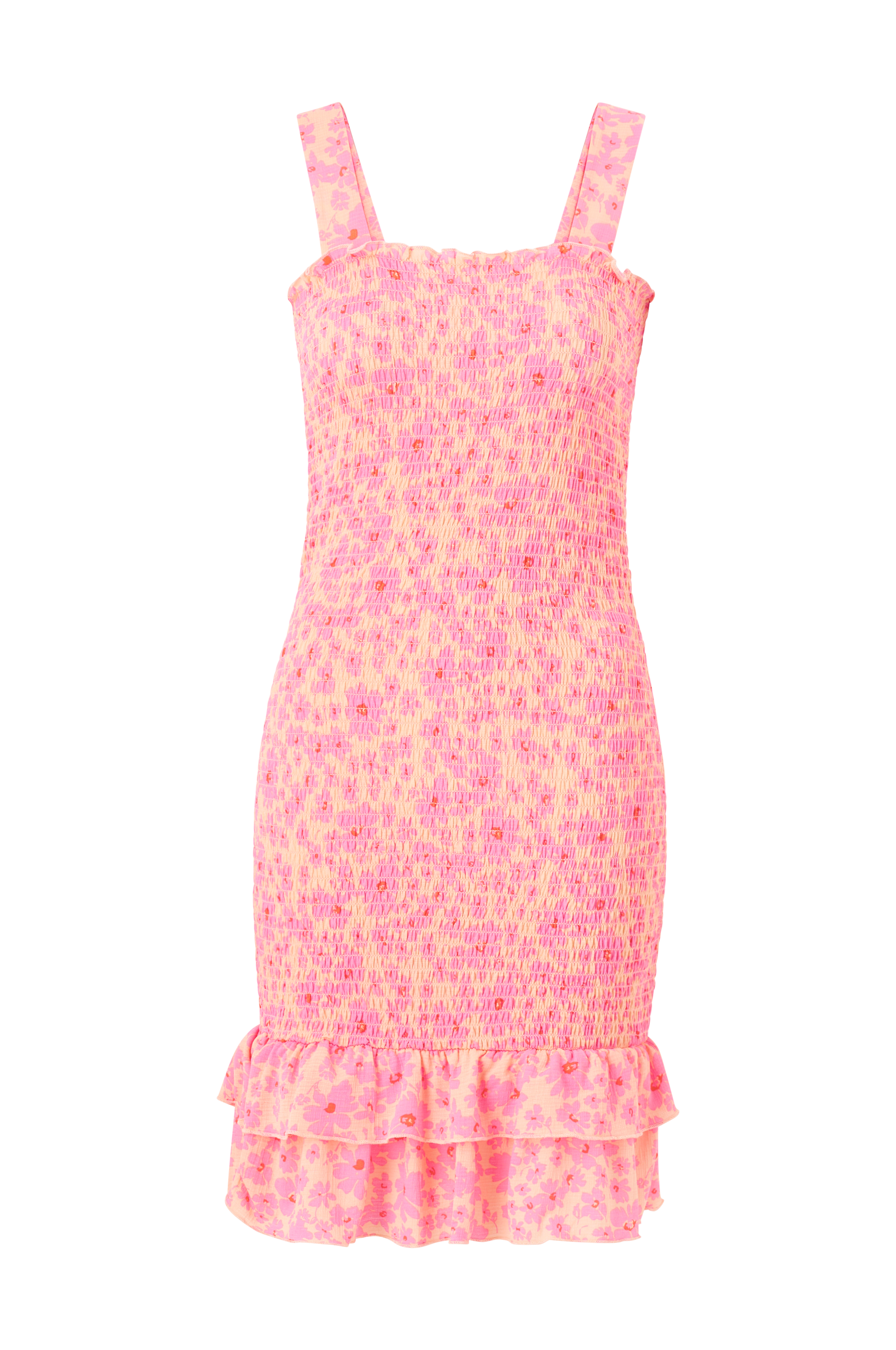 • Figursyet, smocket kjole• Volant på toppen og nederst• Ærmeløst design• Længde: 93 cm i størrelse S