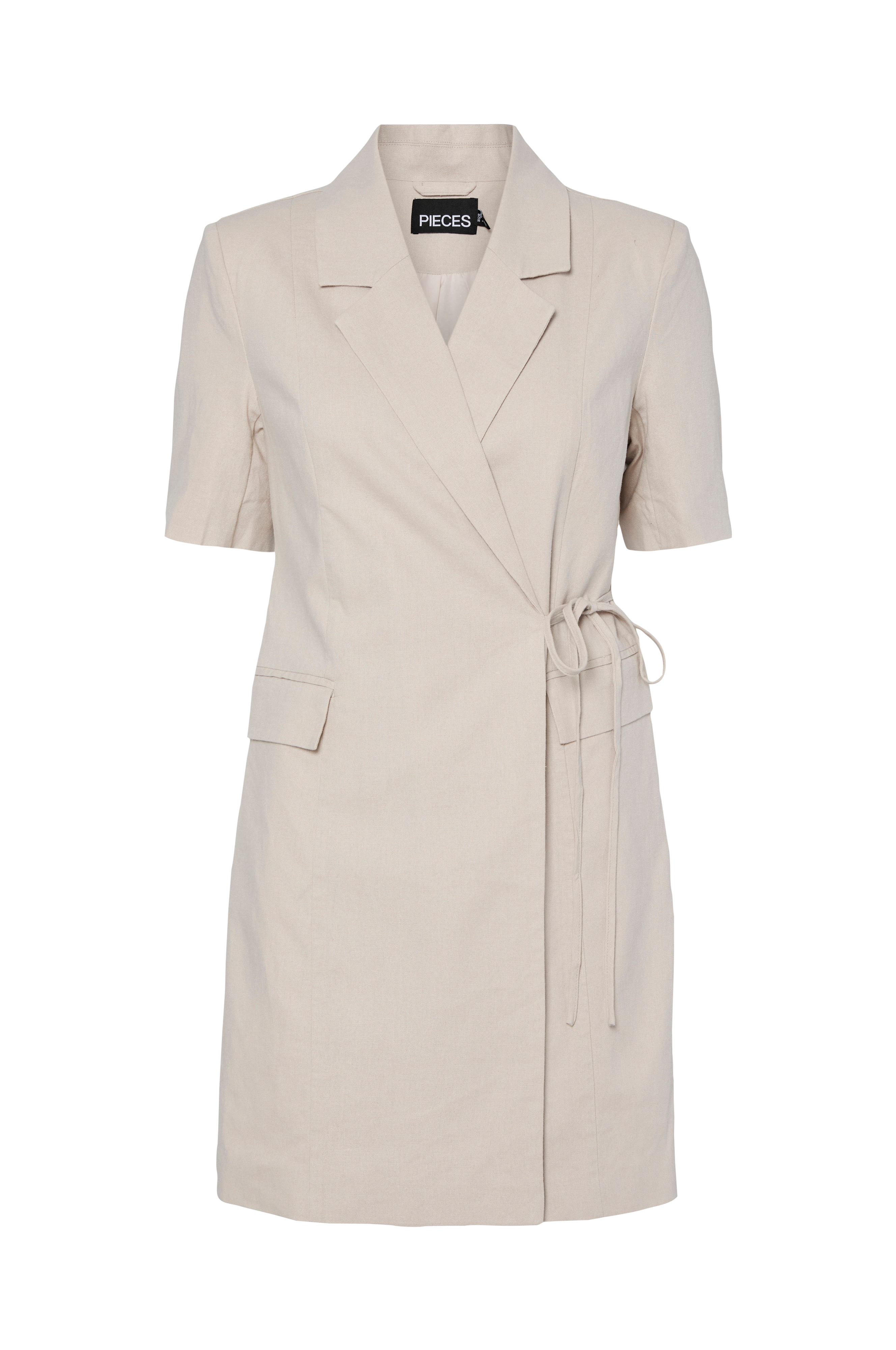 • Jakke-model med stor krave• Korte ærmer• Lukning med tre knapper indvendigt og bindbart bånd i siden• Snydelommer med låg• Dekorative sømme foran og bagpå• Længde: 84 cm i størrelse S