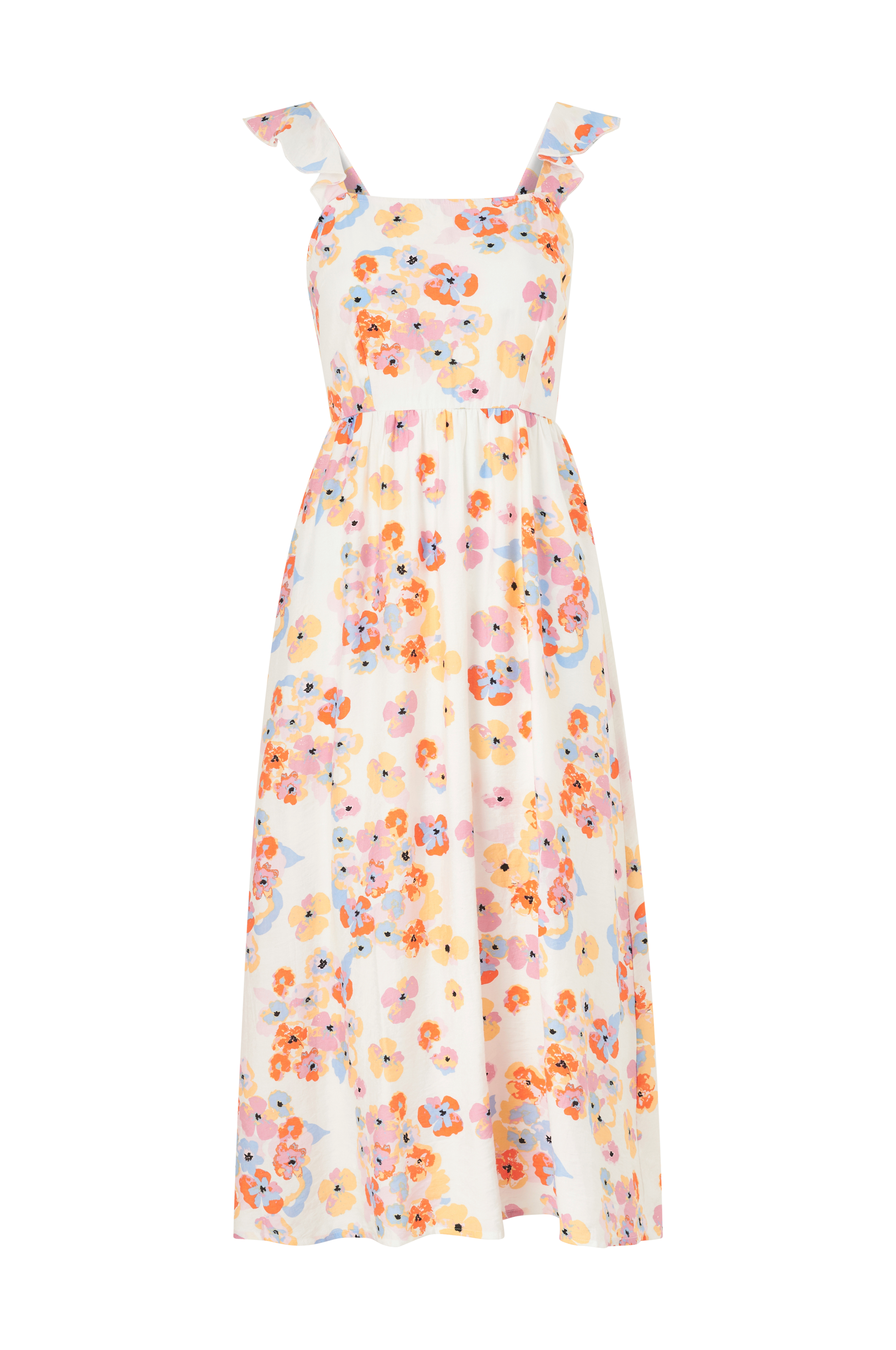 • Figurformede, ærmeløs model• Skulderstrop med volanter• Åben ryg med langt bindebånd på toppen og elastik ved taljen• Foret• Længde: 122 cm i størrelse S