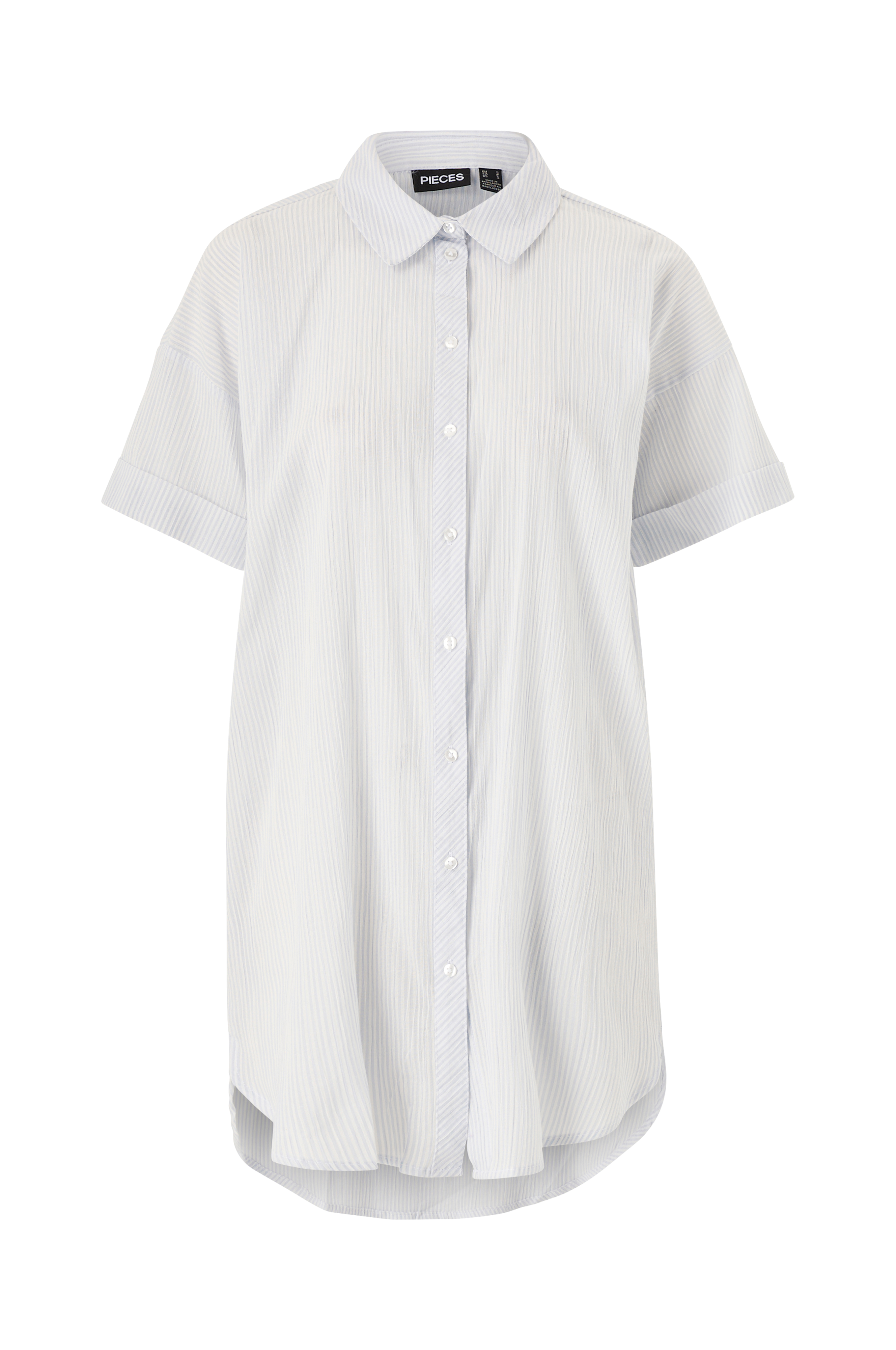 • Korte ærmer med oprullet• Knapper foran• Afrundet søm
