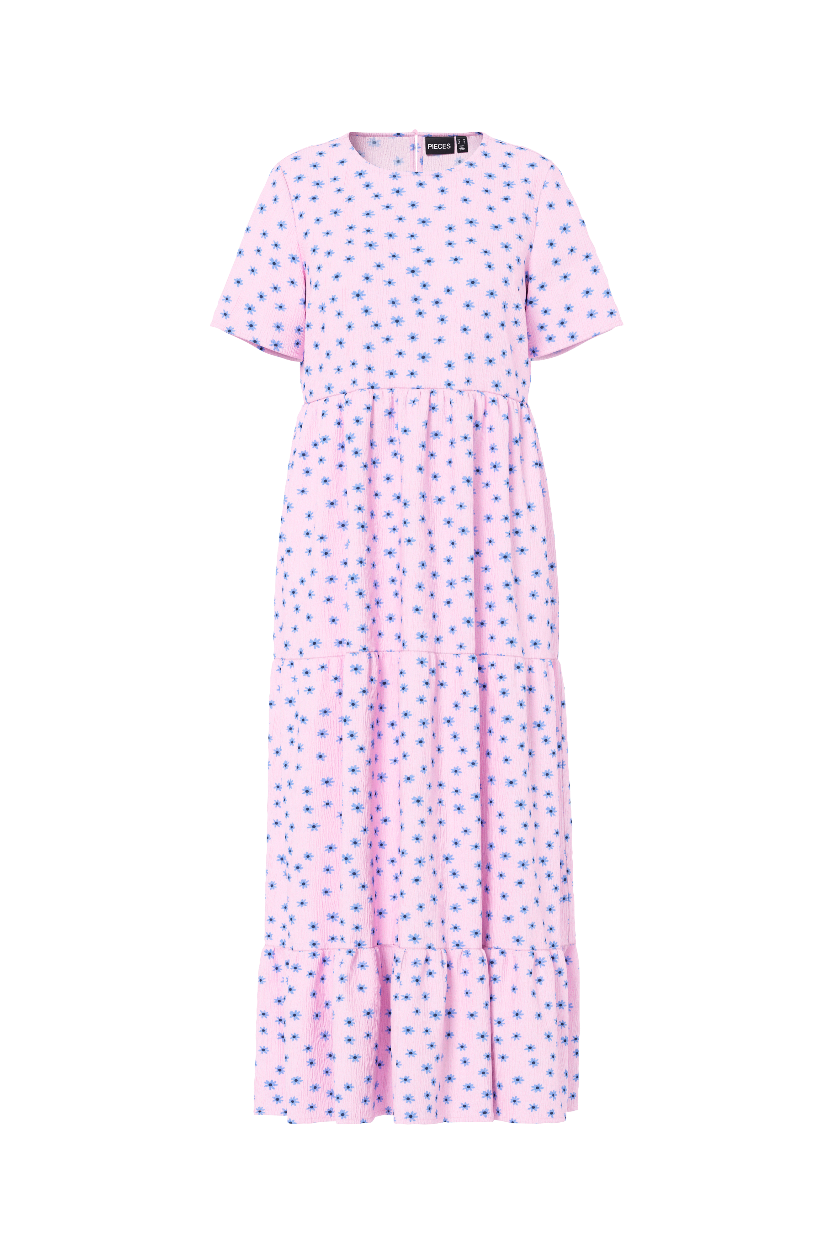 • Lang kjole i viskose• Rund halsudskæring• Slids med knap i nakken• Korte ærmer• Udskæring ved taljen• Volant ved nederste kant• Længde: 132 cm i størrelse S